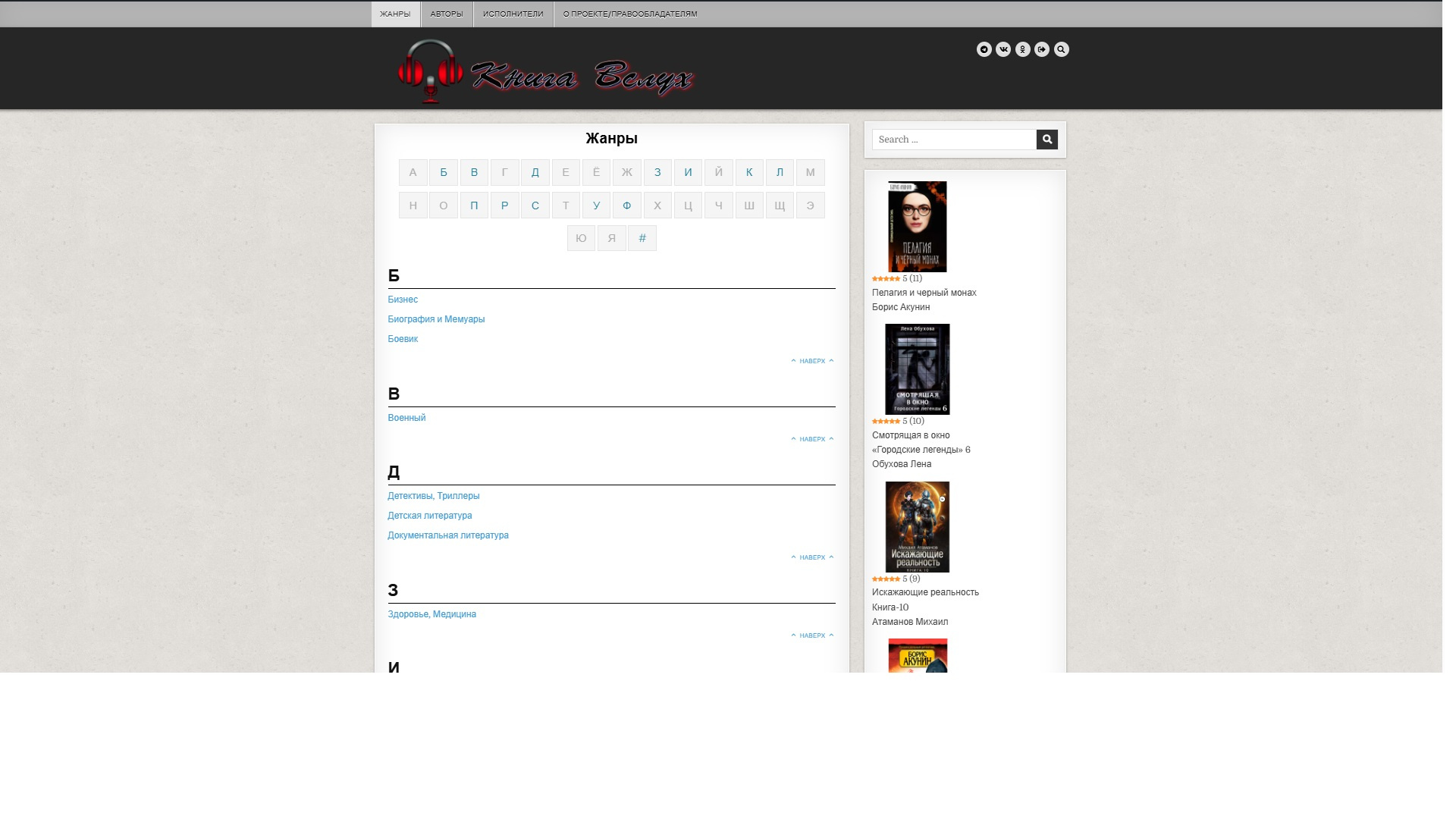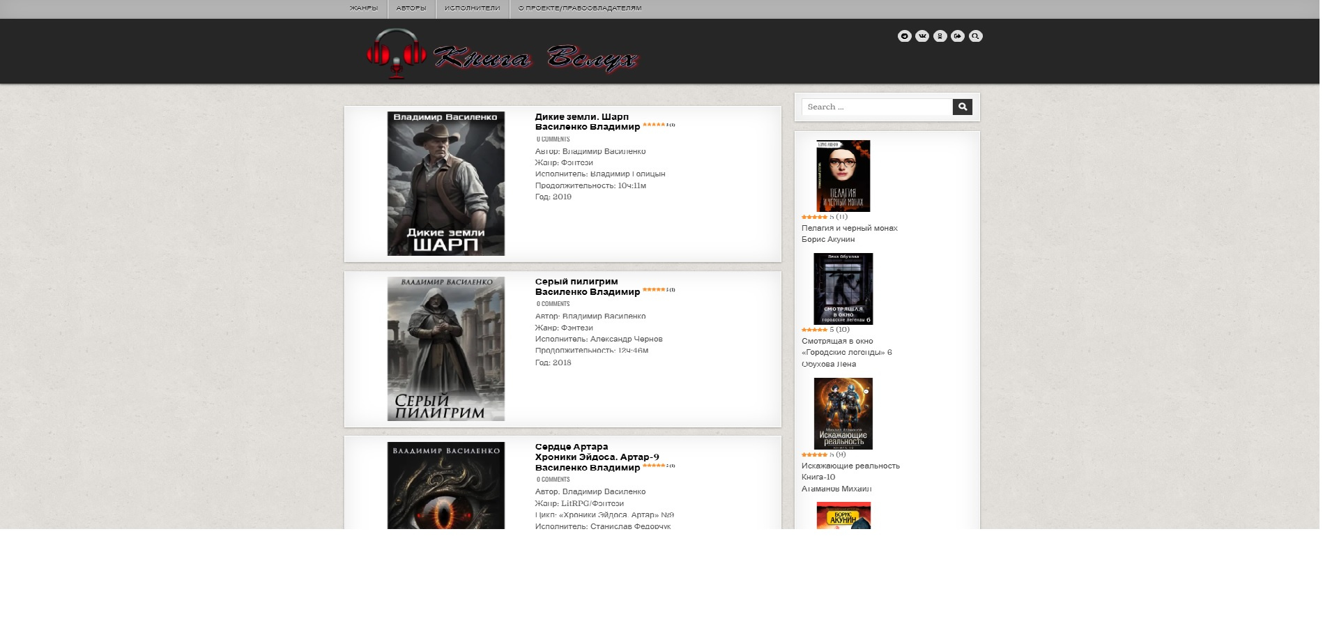 Этот сайт специализируется на публикации и онлайн-прослушивании аудиокниг различных жанров, включая фэнтези, киберпанк, триллер, детектив и мистику. На сайте представлены рукописи популярных авторов, таких как Владимир Василенко, Лена Обухова и Андрей Первухин, среди прочих. Аудиокниги озвучены такими талантливыми исполнителями, как Дмитрий Чепусов, Никита Зуров и Екатерина Бранд. Тематика сайта сильно фокусируется на любителях фэнтези и LitRPG, что делает его привлекательным для поклонников этих направлений.
