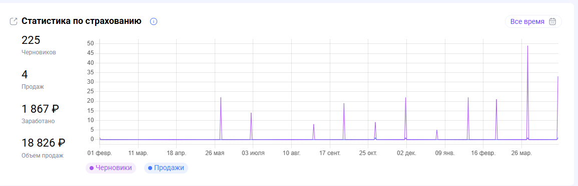 Доход из агентского кабинета pampadu.ru за продажу полисов ОСАГО.