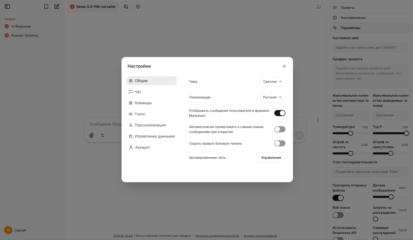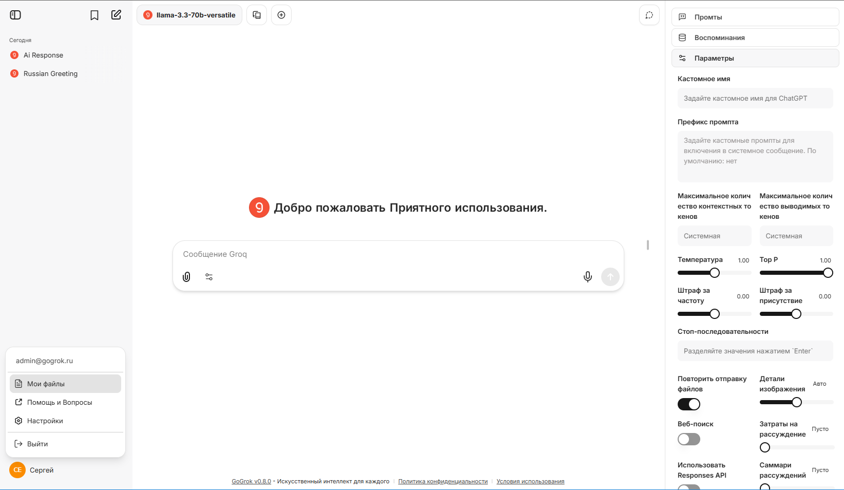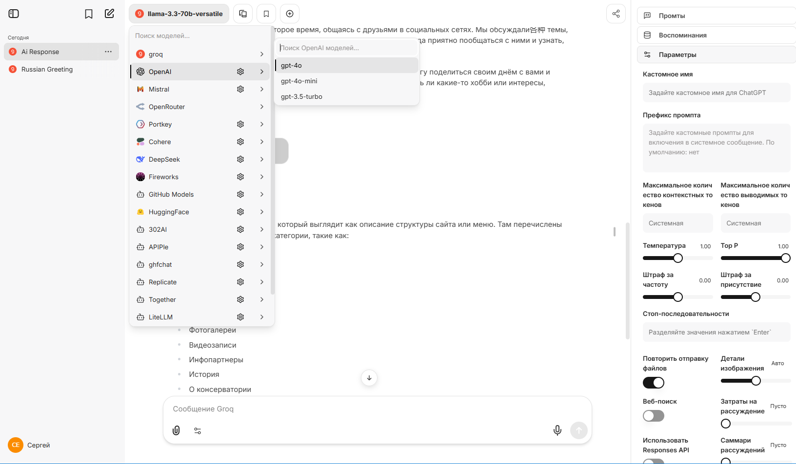 Возможность подключать свои API-ключи для Groq, OpenAI, Google и других провайдеров