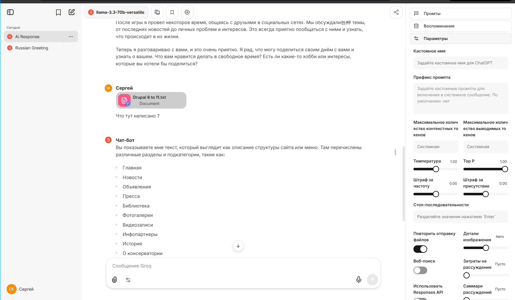 Мгновенные ответы благодаря интеграции с Groq (ускорение до 20×)