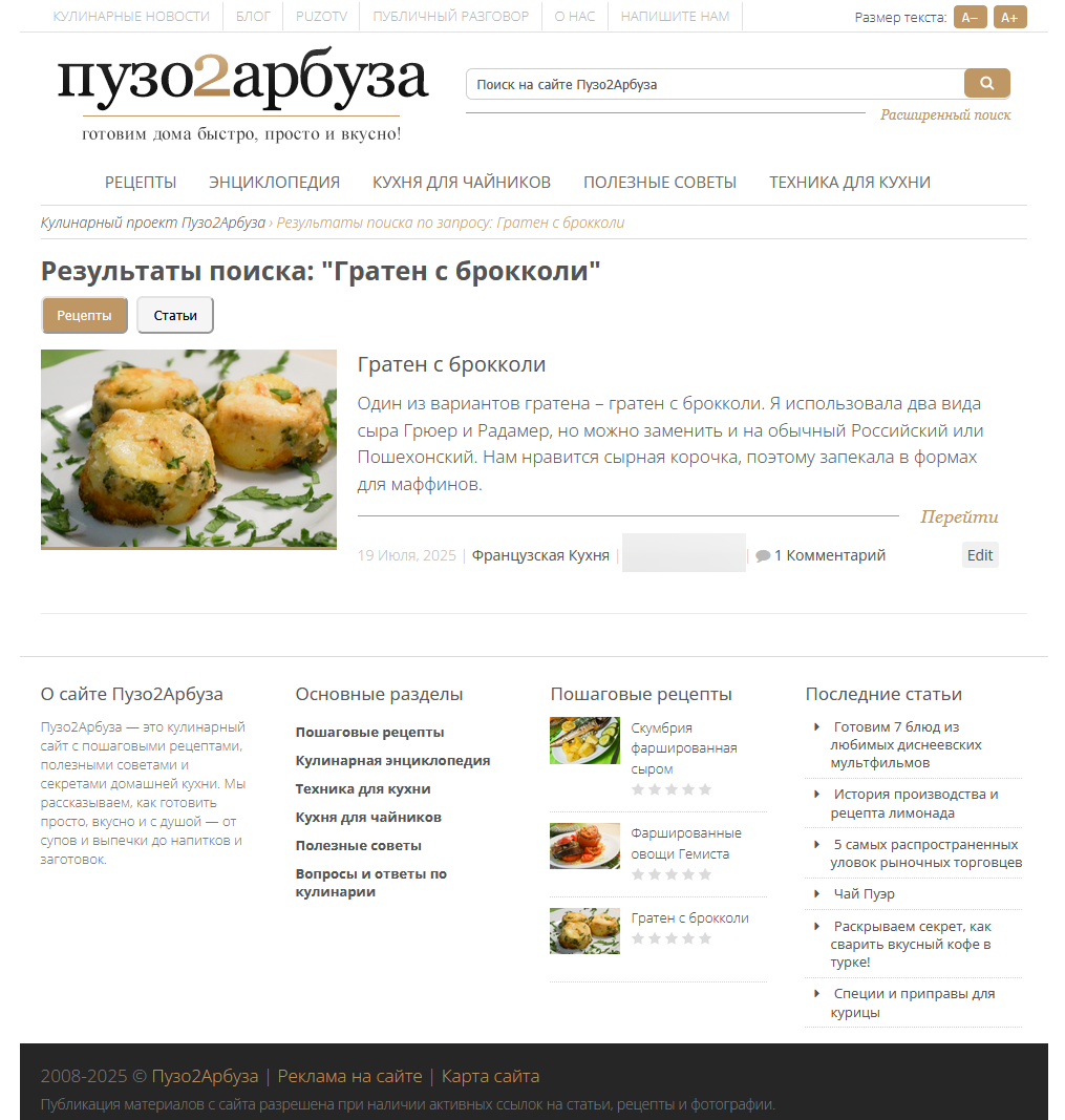 Есть второй кулинарный проект: https://www.telderi.ru/ru/viewsite/2653438