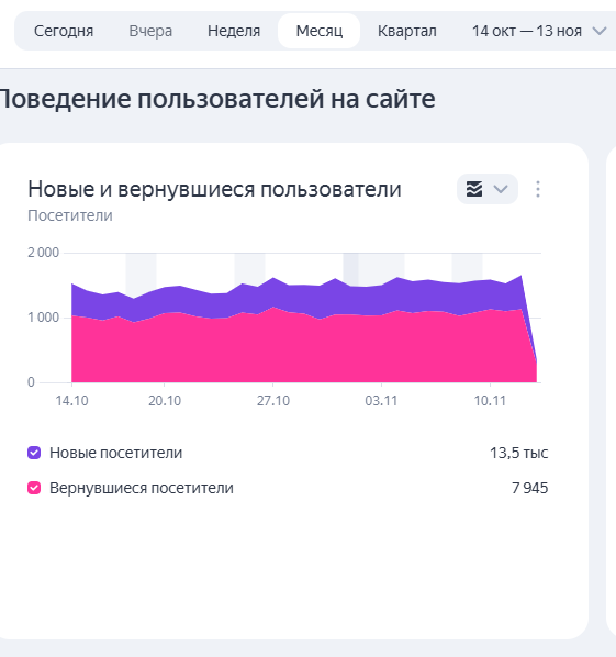 1400–1500 уникальных посетителей в сутки (по данным Яндекс.Метрики).