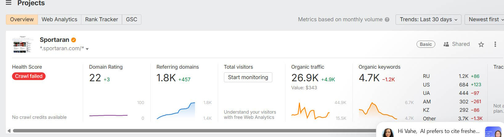 Крупный спортивный новостной сайт Sportaran.com — 500k уникальных / 1 млн визитов в месяц, доход 160–170 тыс ₽, собственный движок Django, Google News + Discovery