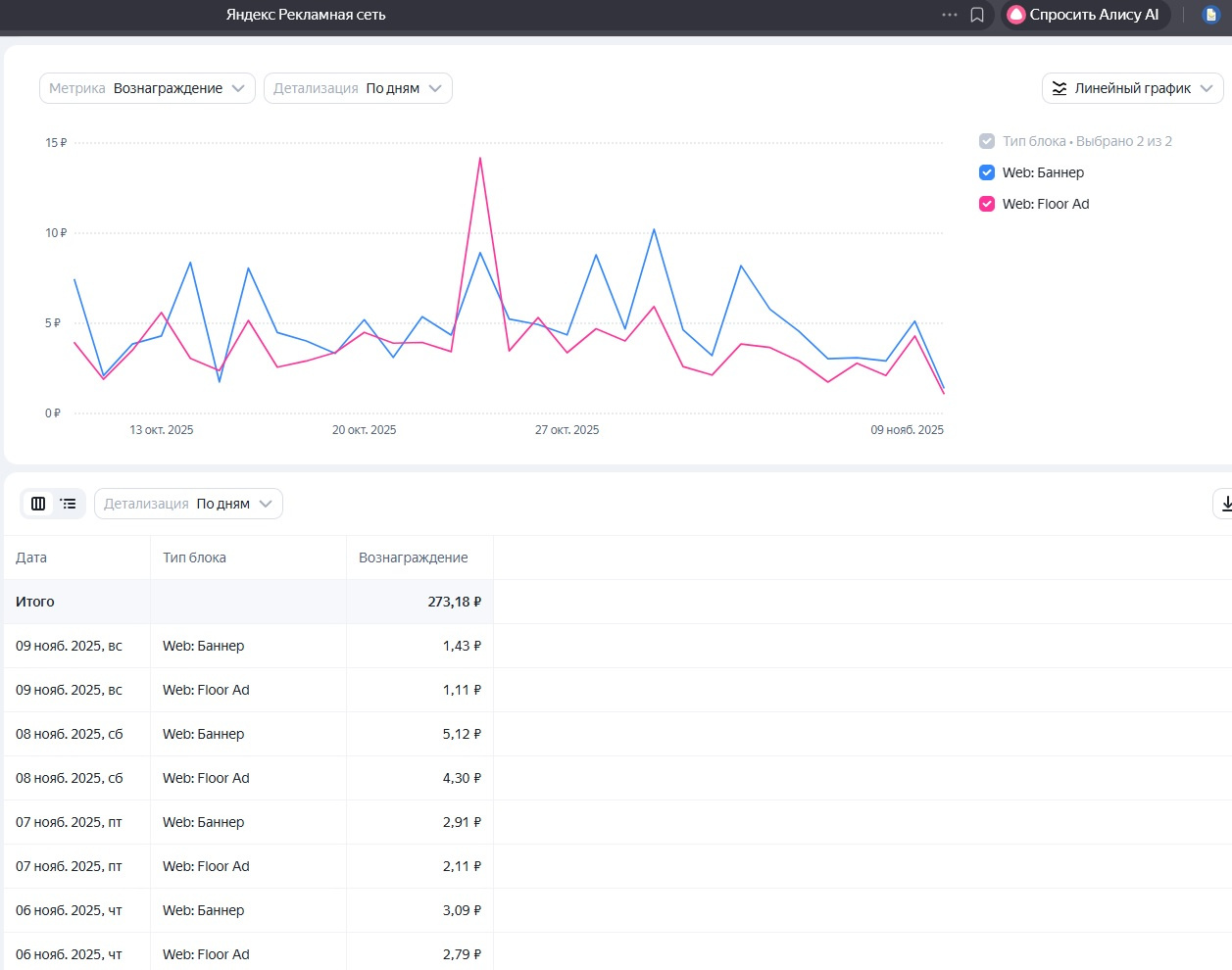 Заработок был на Google Adsense (который затем прекратился из-за ухода компании из РФ), РСЯ (значительно снизился после продажи самого яндекса российским инвесторам) и немного с яндекс дистрибуции.