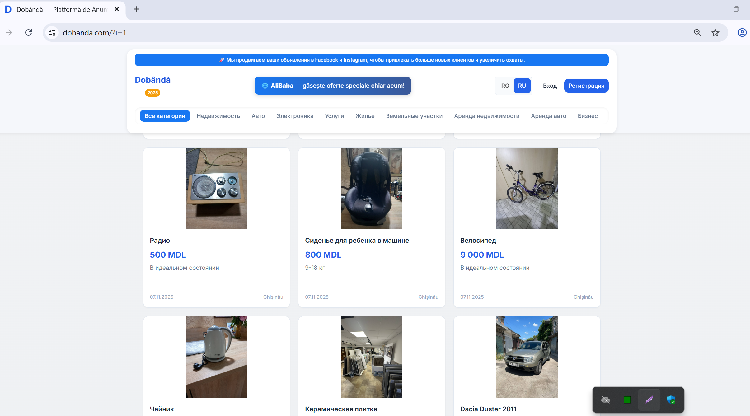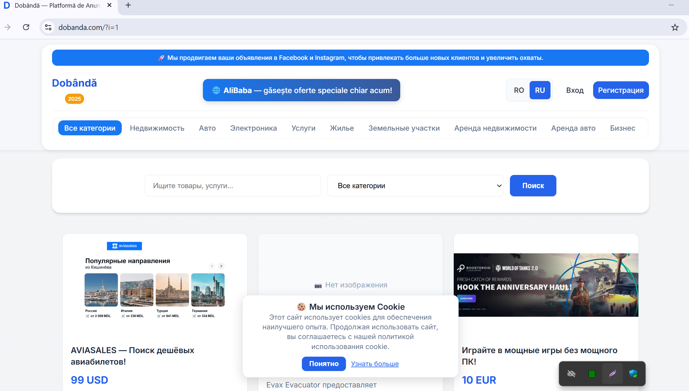 Продаётся полностью рабочий проект Dobândă — современная доска объявлений, созданная для рынков Молдовы, Румынии и русскоязычного пространства. Сайт имеет две полноценные версии: русскую и румынскую, адаптирован для всех устройств, настроен под SEO и уже готов к масштабированию.