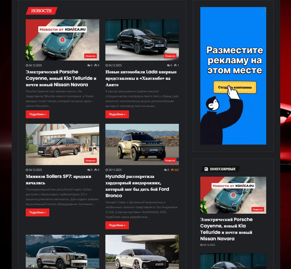 Автонаполняемый сайт автомобильной тематики ИКС 10.