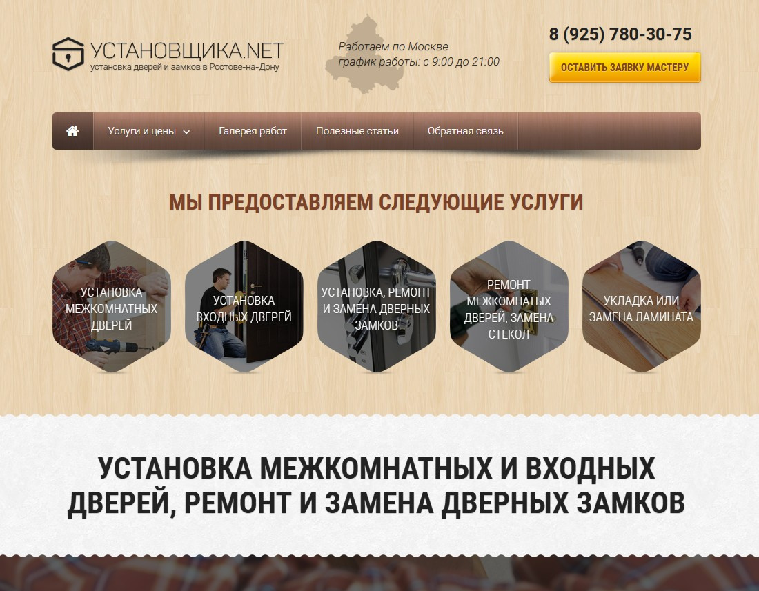 Сайт предлагает подробные прайсы на различные виды работ, что позволяет посетителям сразу оценить стоимость услуг и выбрать подходящий вариант. Целевая аудитория — это владельцы квартир и домов, которые ищут профессиональных исполнителей для установки дверей, а также строительные компании и дизайнеры интерьеров, которым нужны надежные подрядчики для реализации проектов. На сайте публикуется актуальная информация о ценах, условиях работы, а также полезные статьи и советы по выбору и установке дверей, что положительно влияет на SEO и привлекает органический трафик.