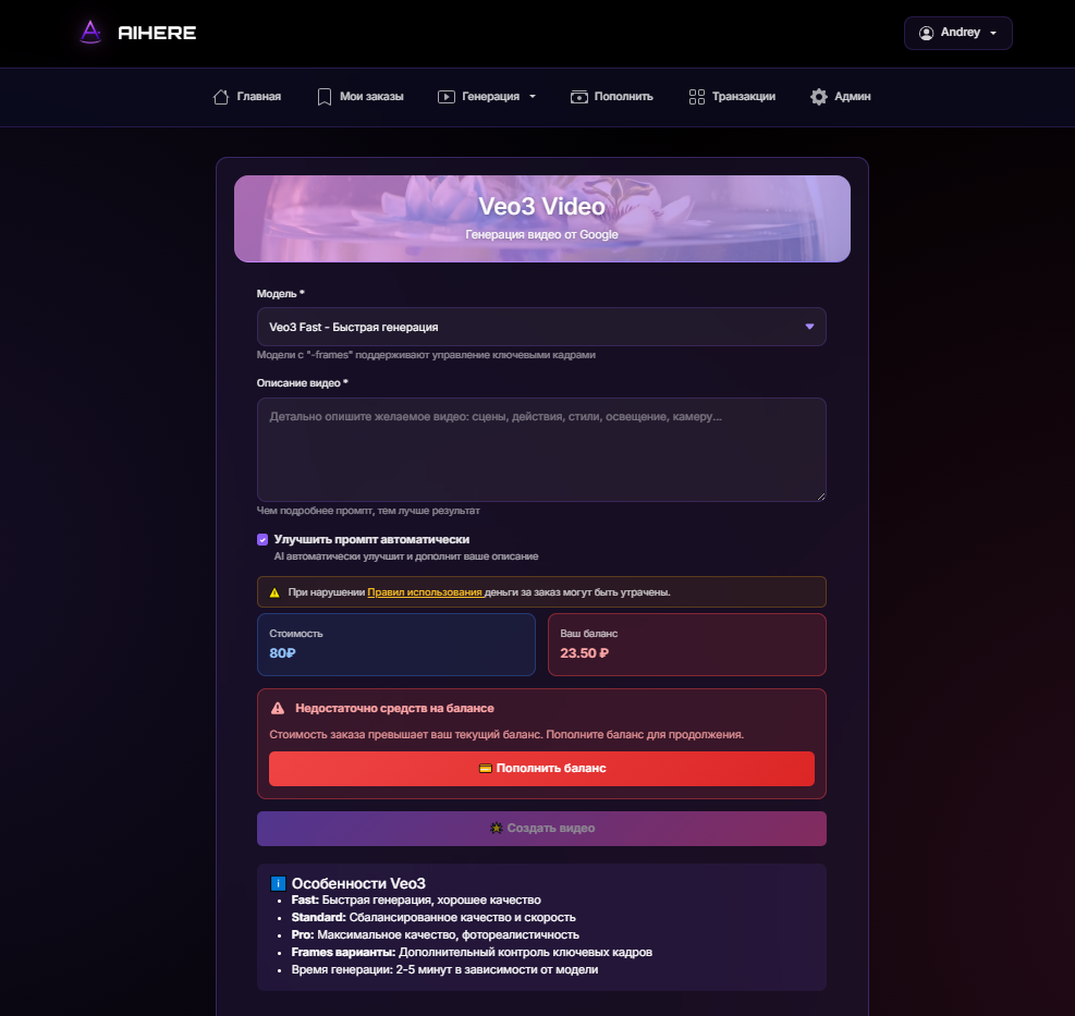 Продаю копию сайта без домена для перепродажи нейросетей Sora2, Veo3, Minimax/Hailuo.