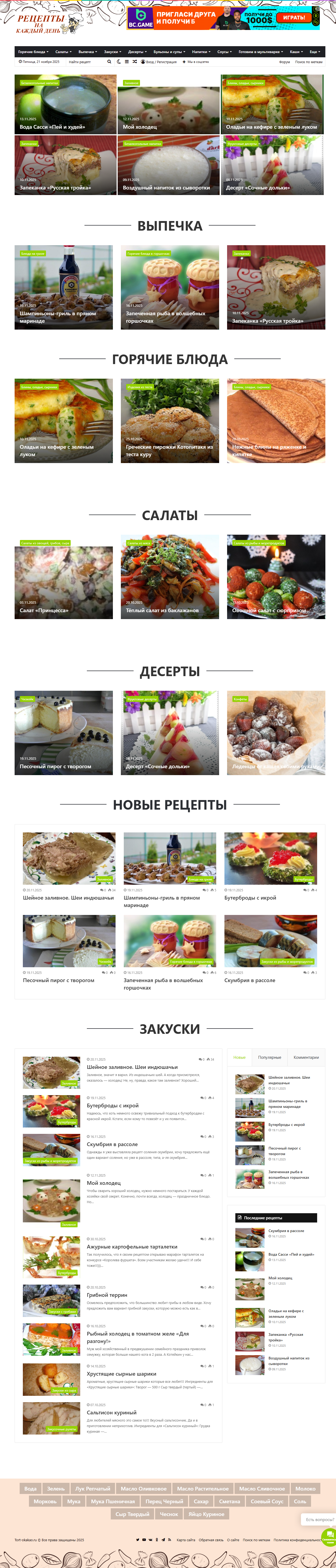 Автонаполняемый кулинарный сайт с рецептами ИКС 20.