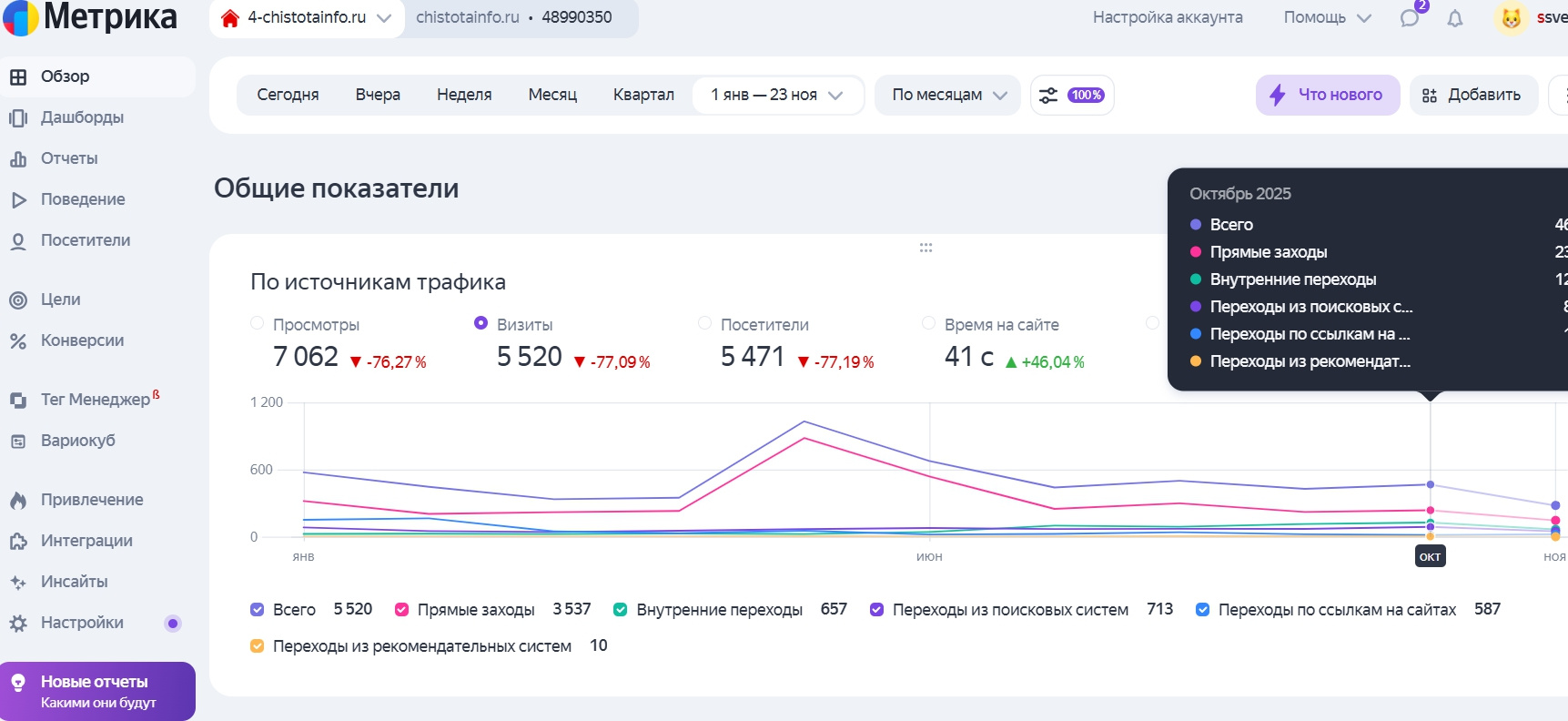 Контент сейчас редко обновляется, поэтому трафик падает. К сожалению, нет времени заниматься развитием сайта.