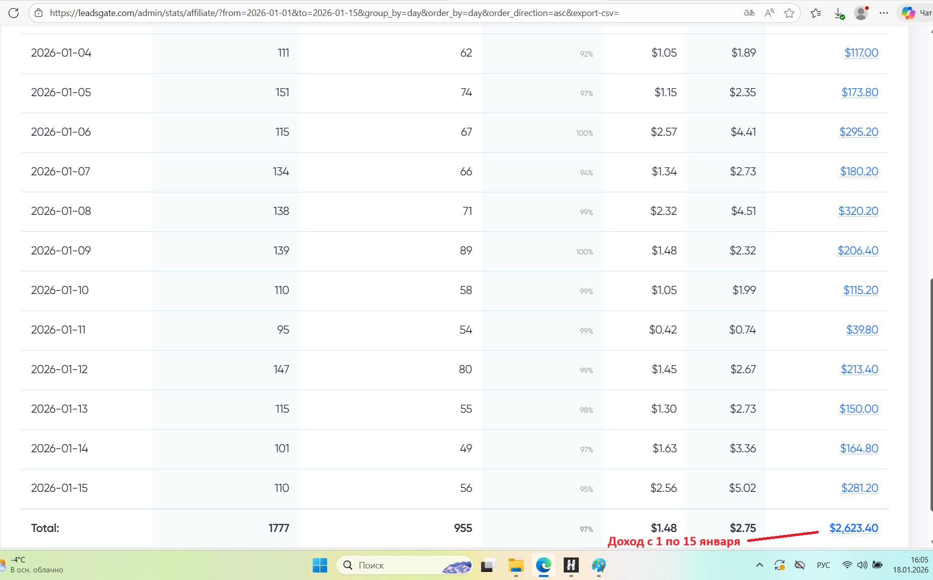 Доход с 1 по 15 января - 2623 $ (204.000 руб). Скрин прикрепил.