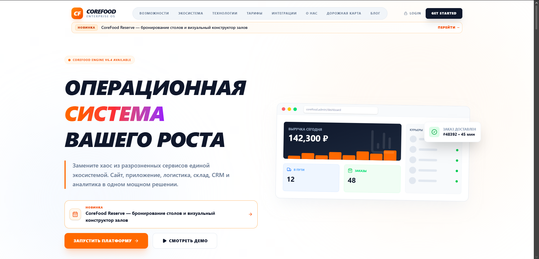 Продаю собственную разработку — CoreFood Ultra SaaS. Это комплексное решение для запуска собственного агрегатора доставки, автоматизации сети ресторанов или продажи подписки заведениям (модель SaaS).