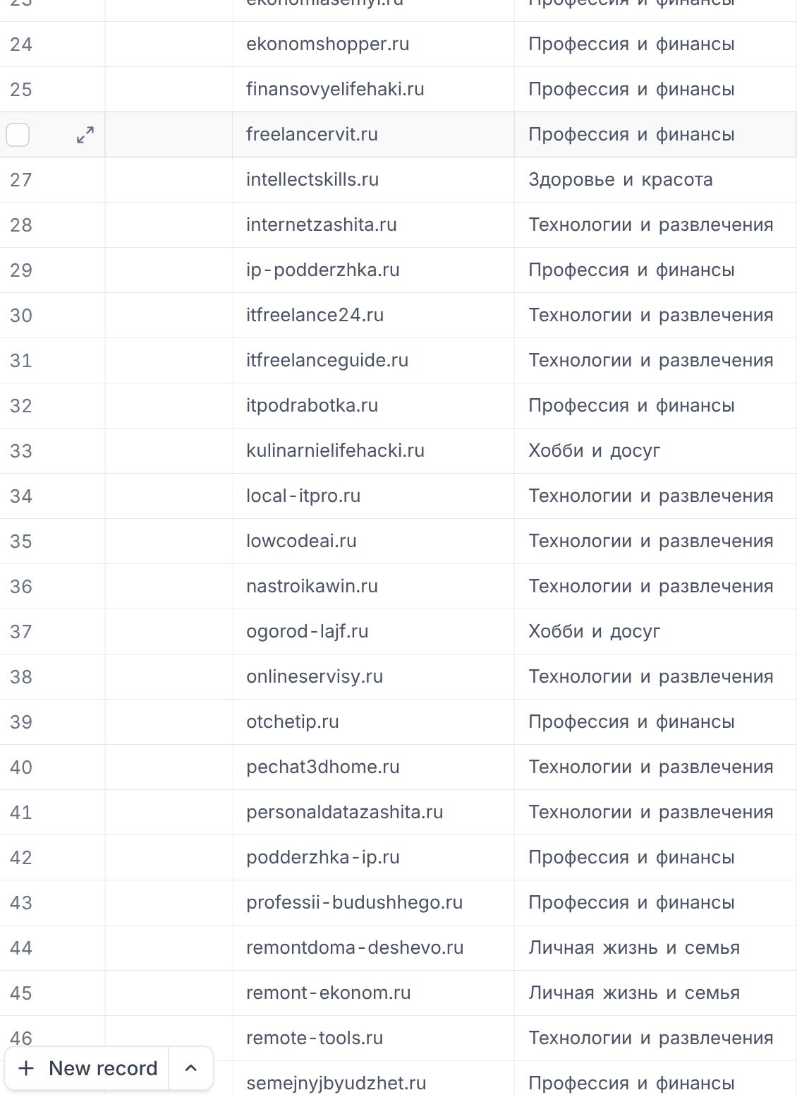 Профессия и финансы (26 сайтов, 50%) — это одна из самых монетизируемых ниш: