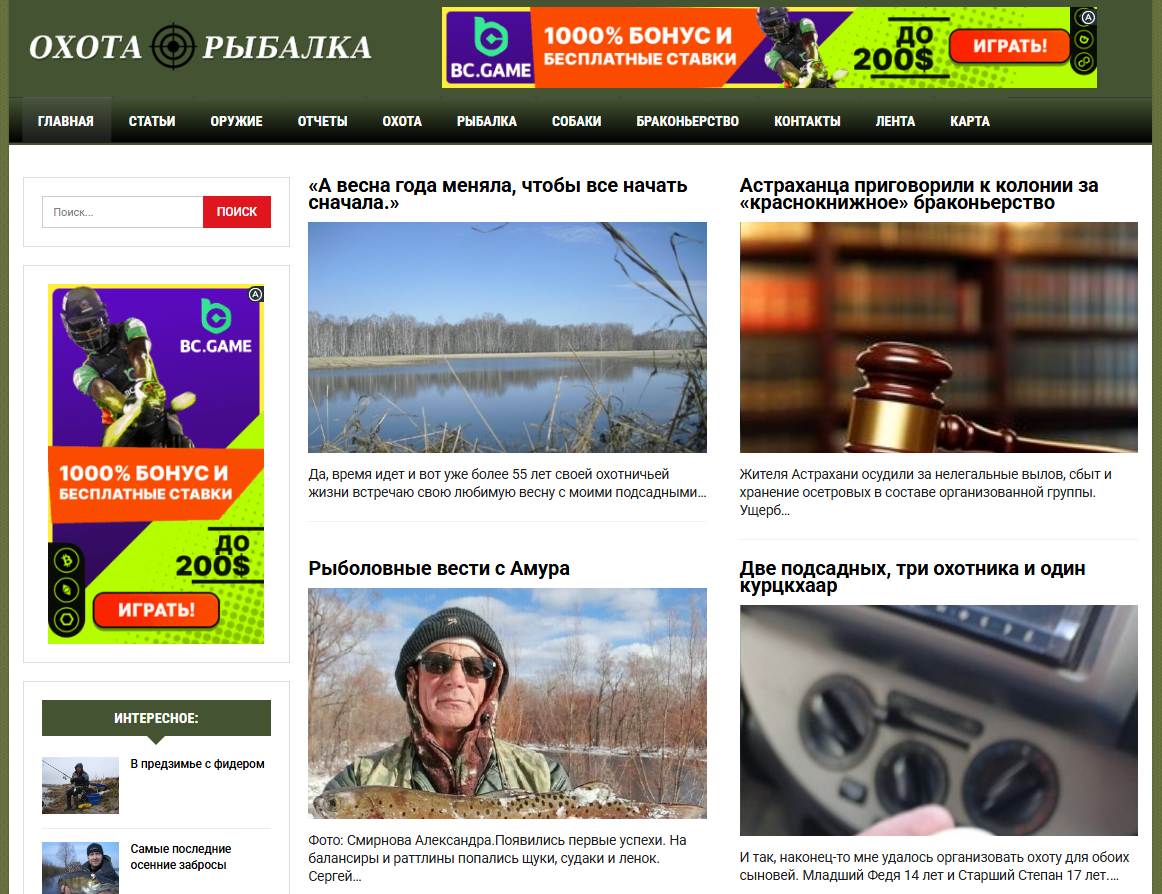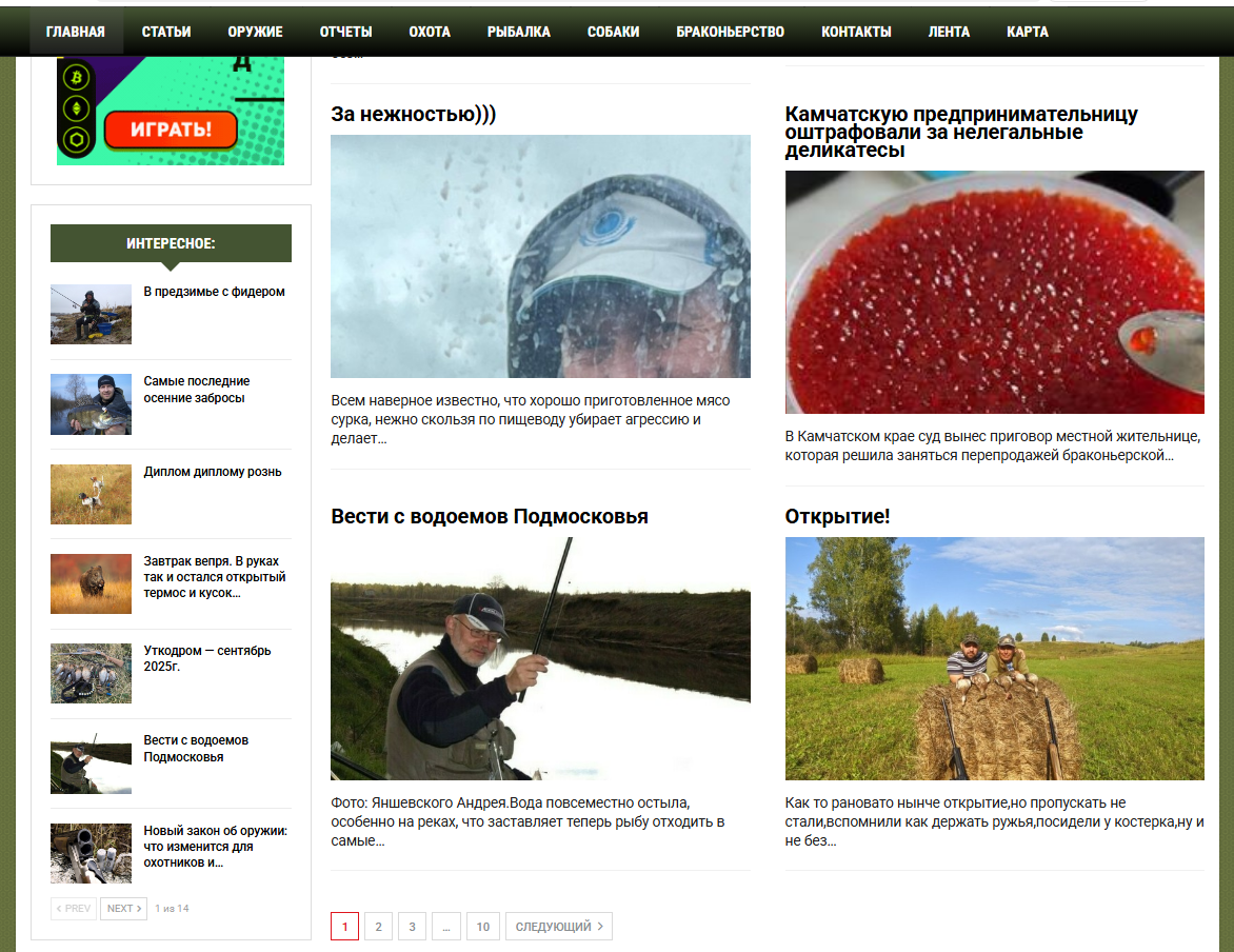 Автонаполняемый сайт о охоте и рыбалке ИКС 20