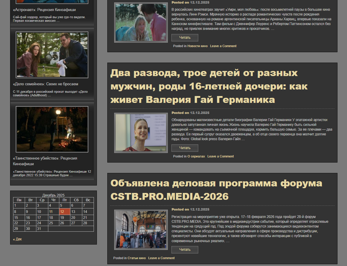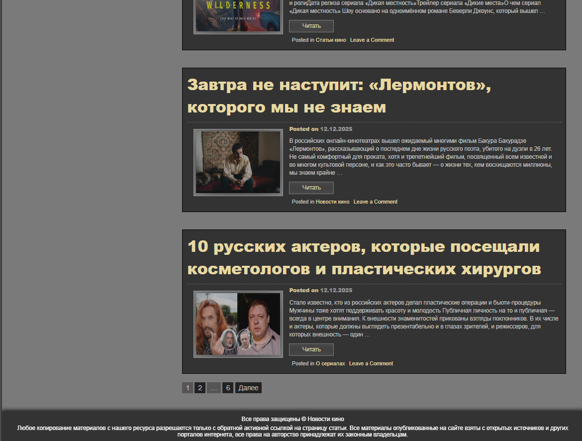 Автонаполняемый сайт Новости Кино с РСЯ ИКС 30