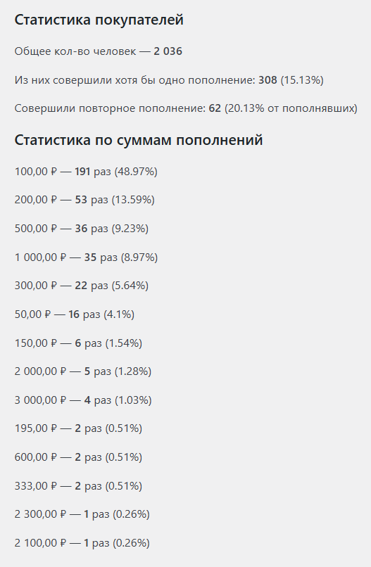 Статистика по суммам пополнений