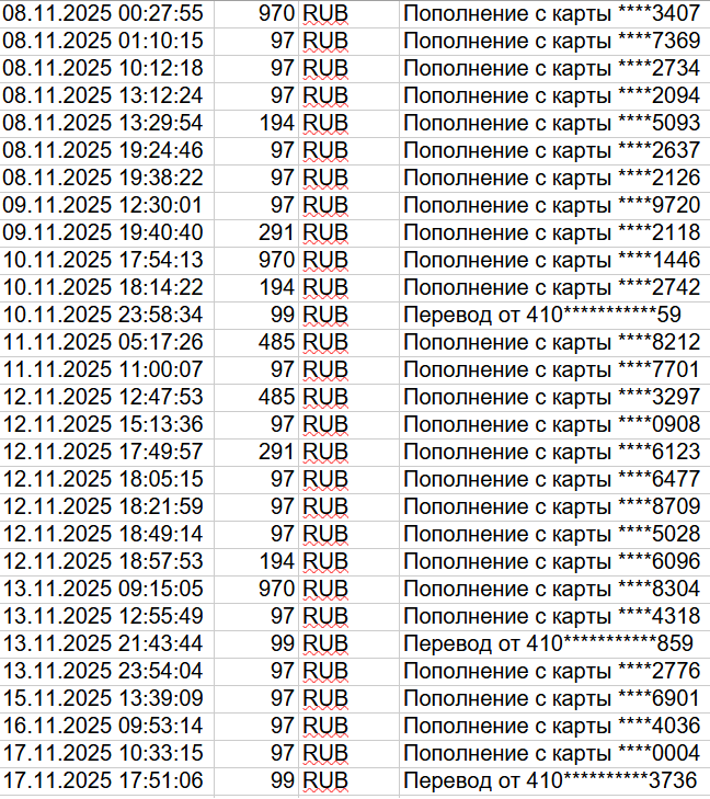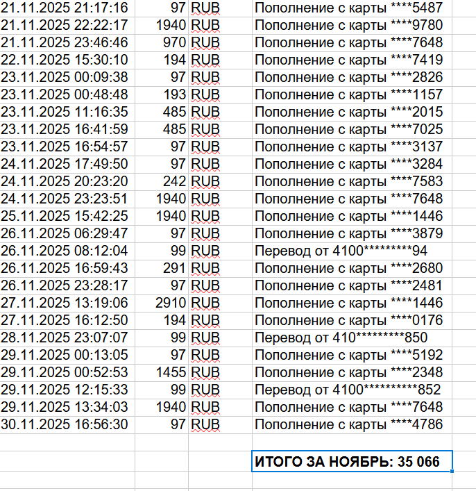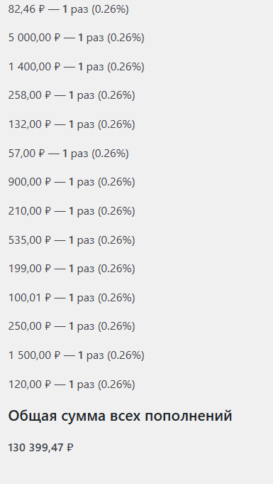 Общая сумма всех пополнений: