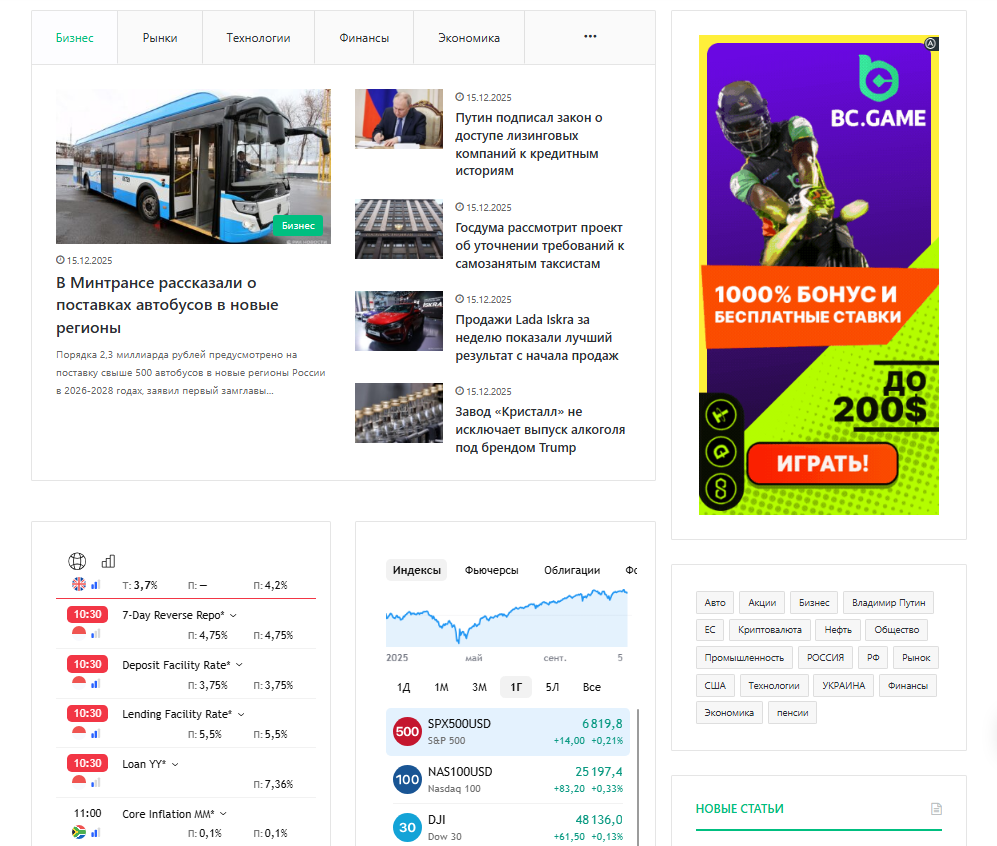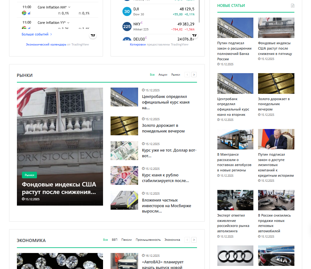 Автонаполняемый многоязычный сайт Новости экономики ИКС 20.