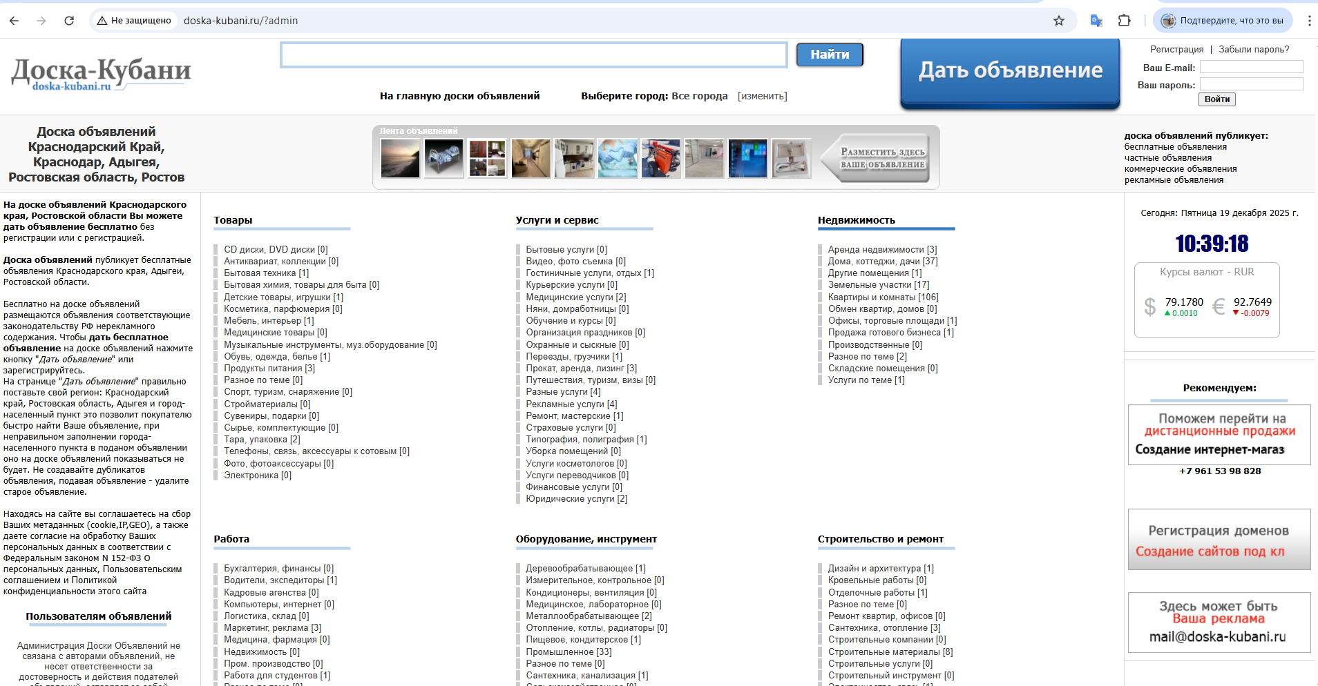 Тематика сайта: бесплатные и платные объявления Краснодарского края, Ростовской области, Адыгеи.