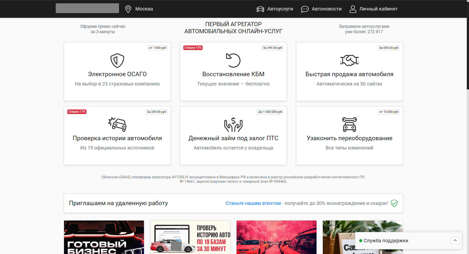 - Сильное SEO-ядро: оптимизация под ключевые коммерческие запросы («купить ОСАГО онлайн», «проверить авто»), более 700 статей для роста трафика.