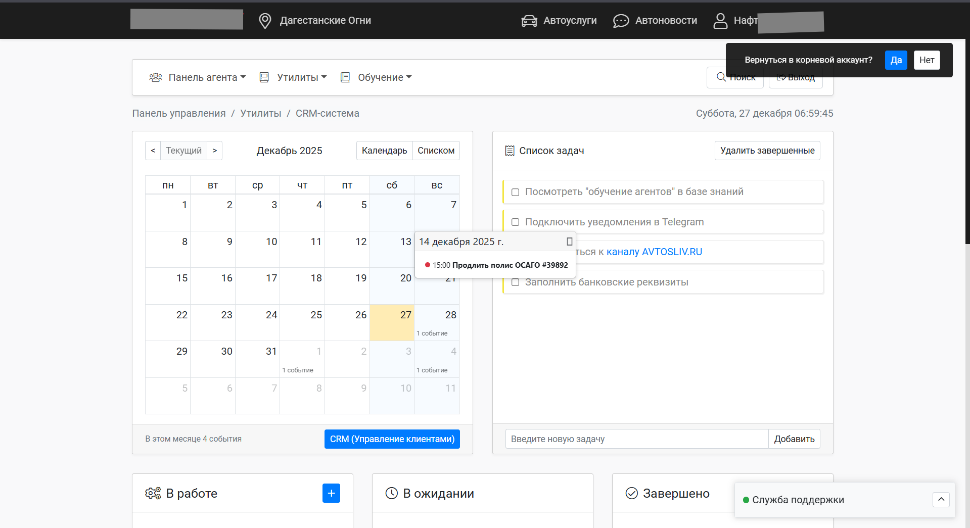 - Полностью рабочая система с CRM, базой агентов и партнеров.