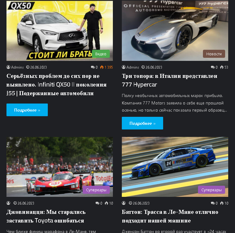 Сайт представляет собой платформу, посвященную автомобильной тематике, где публикуются самые интересные и важные новости автомобильного мира, тест-драйвы популярных моделей, эксклюзивные материалы и комментарии автоэкспертов. Его специфика — в фокусе на информативном контенте для энтузиастов авто, с акцентом на практические обзоры и экспертные мнения, что делает его надежным источником для тех, кто интересуется иномарками. Целевая аудитория включает владельцев автомобилей иностранного производства, таких как Volkswagen, Audi, BMW, Toyota, Mercedes и других марок из широкого списка (Acura, Alfa Romeo, Chevrolet, Honda, Hyundai, Kia, Mazda, Nissan, Opel, Peugeot, Renault, Skoda, Subaru, Suzuki и многие другие), а также автолюбителей, ищущих запчасти б/у, механиков и всех, кто нуждается в свежих новостях и тестах для выбора или ремонта машин. Контент сайта наполнен новостями, тест-драйвами и экспертными материалами, что способствует хорошему SEO за счет релевантных ключевых слов по автомобильным темам, частых обновлений и привлекательного дизайна, ориентированного на удобное чтение и навигацию — это повышает время пребывания посетителей и позиции в поисковиках. Перспективы роста высоки: для увеличения трафика стоит добавить больше эксклюзивных обзоров и видео, оптимизировать под мобильные устройства, интегрировать каталоги запчастей с доставкой, запустить контекстную рекламу и партнерства с авторазборками, что позволит удвоить доходы от рекламы и партнерок. Полезно отметить, что проект связан с реальной компанией по продаже б/у запчастей для иномарок с европейских разборок, включая специализацию на Volkswagen Transporter T4, с адресом в Ярославле и контактами для заказов — это добавляет ценности для монетизации через прямые продажи. Пишите, задавайте вопросы по проекту — готов обсудить детали и помочь с передачей!