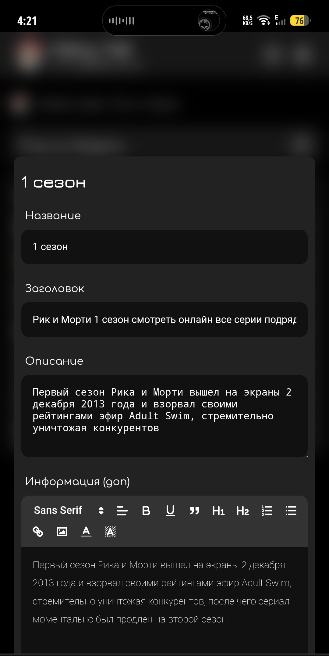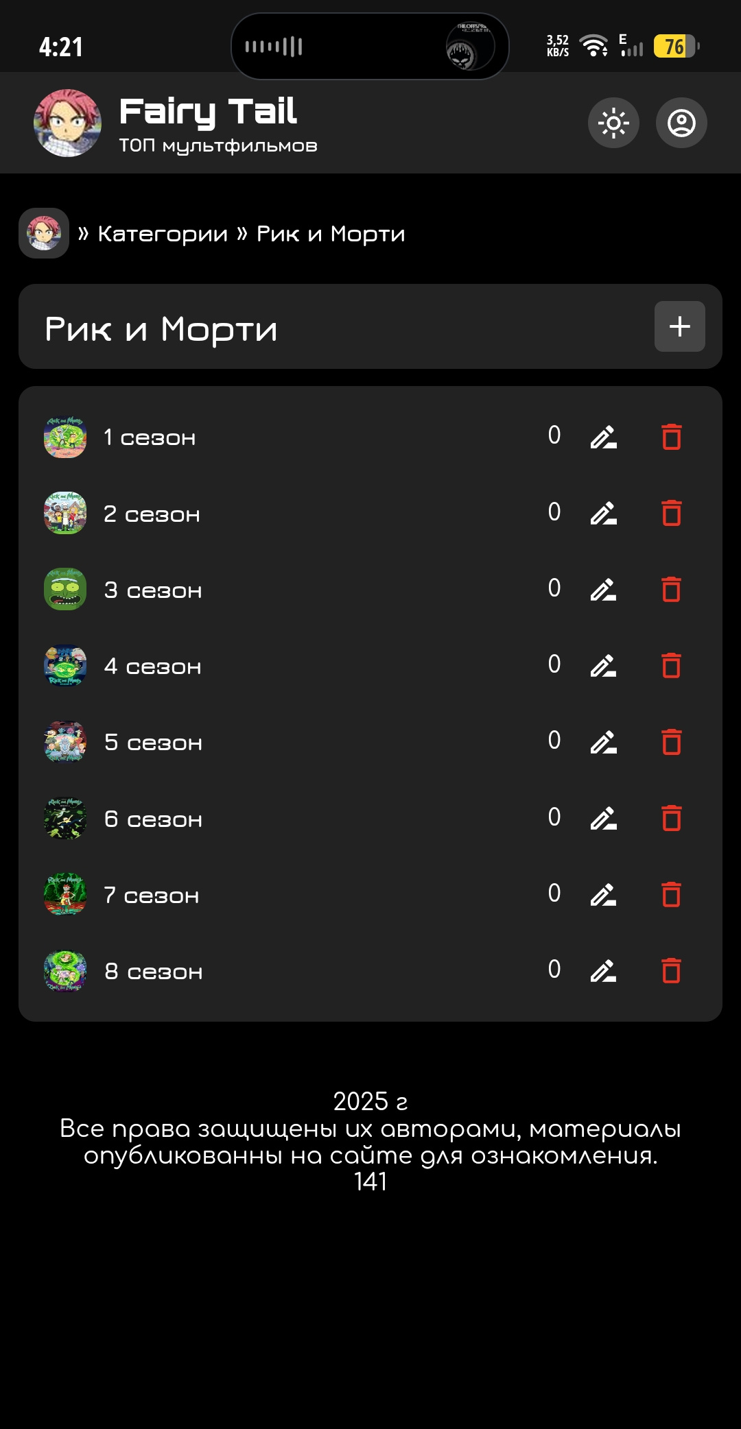 Сайт с мультфильмами и аниме. Сделанный по типу фан сайта ТОП'овых мультфильмов, Хвост феи, Тетрадь смерти, Самурай Джек и т.д. Доход можно поднять количеством мультфильмов и расширением порта (сейчас 100Мбт). Сейчас в плеере вообще нет рекламы. Админка простая, регистрация пользователя не доступна, но можно включить. Микроразметка внедрена. Падение на графике было из-за хостера FIRST-WDS, в конце концов, упал сервер так, что удалили 300Гб данных без возможности восстановления, я был в шоке. Имейте ввиду.