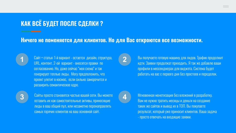 Чистый УБТ трафик, без накрутки ПФ, Бонусом пачка сайтов в трафиком и лидами, есть сайты динозавры: 2011, 2015-х годов. ПРИЧИНА ПРОДАЖИ: В СОЛО не вывожу, + смещаю фокус в другое направление