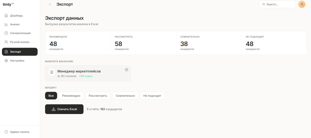 — Ранжирование кандидатов, экспорт в Excel, массовые отказы
