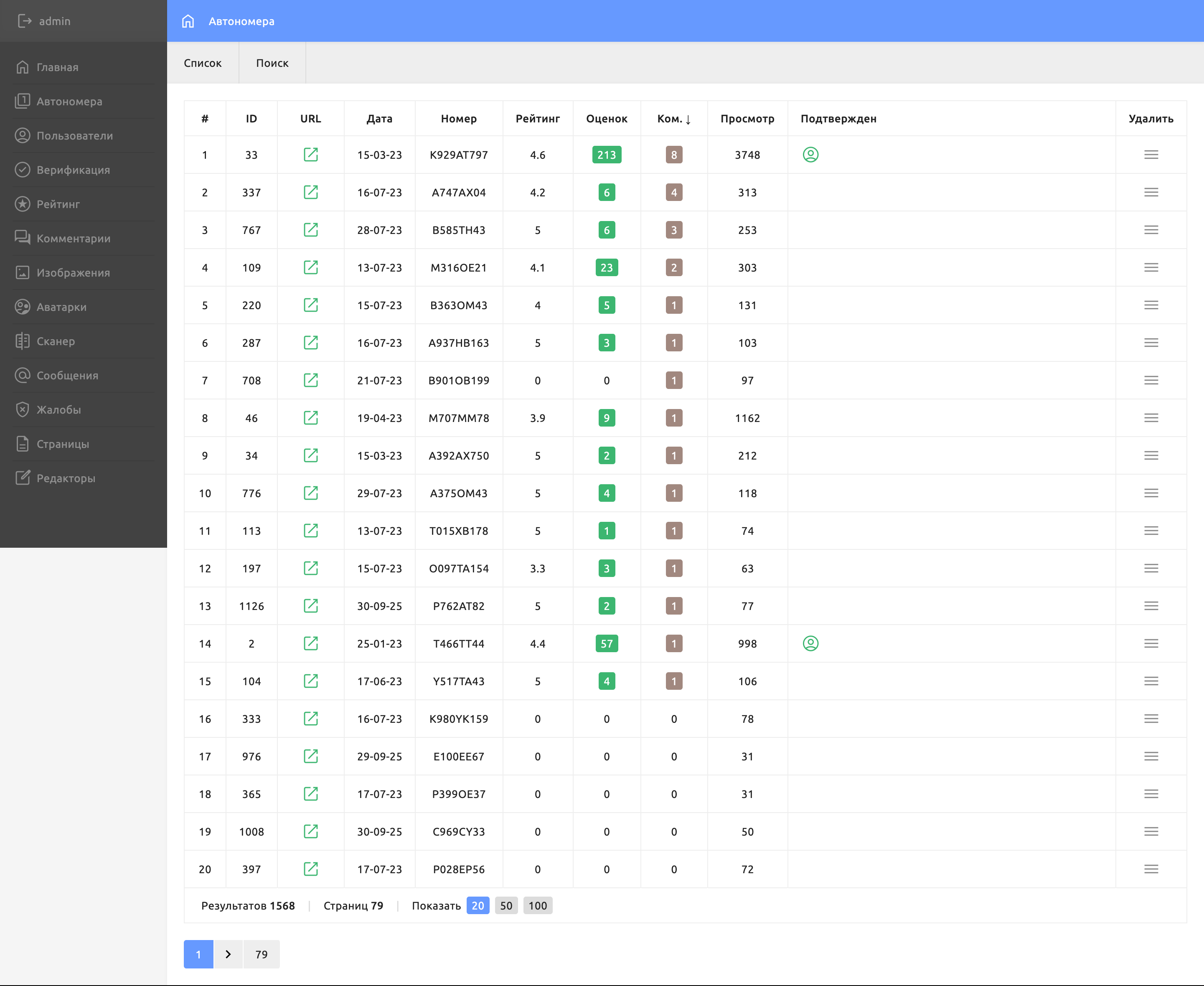 - Подписки на номер, комментирование с фото, отзывы
