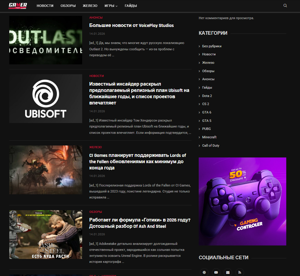 - Установлена премиум тема от Soledad с широкой возможностью интегрирования рекламных блоков.