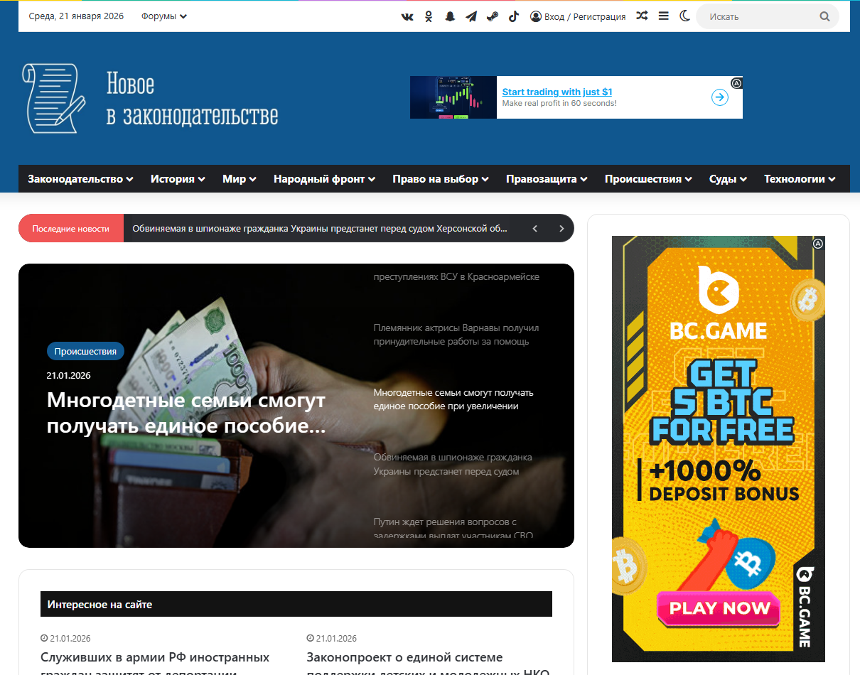 Автонаполняемый сайт о законе и праве с трафиком ИКС 60