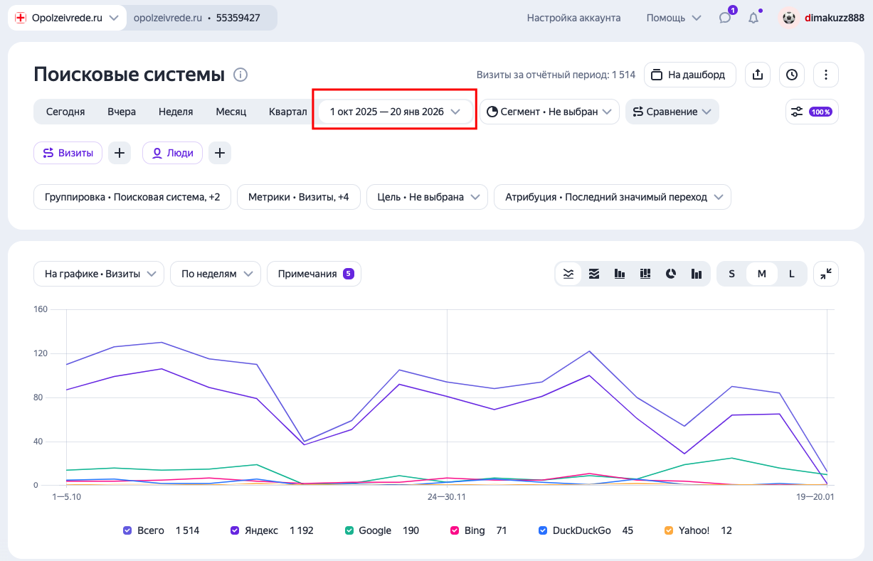 Статистика по Яндекс.Метрике