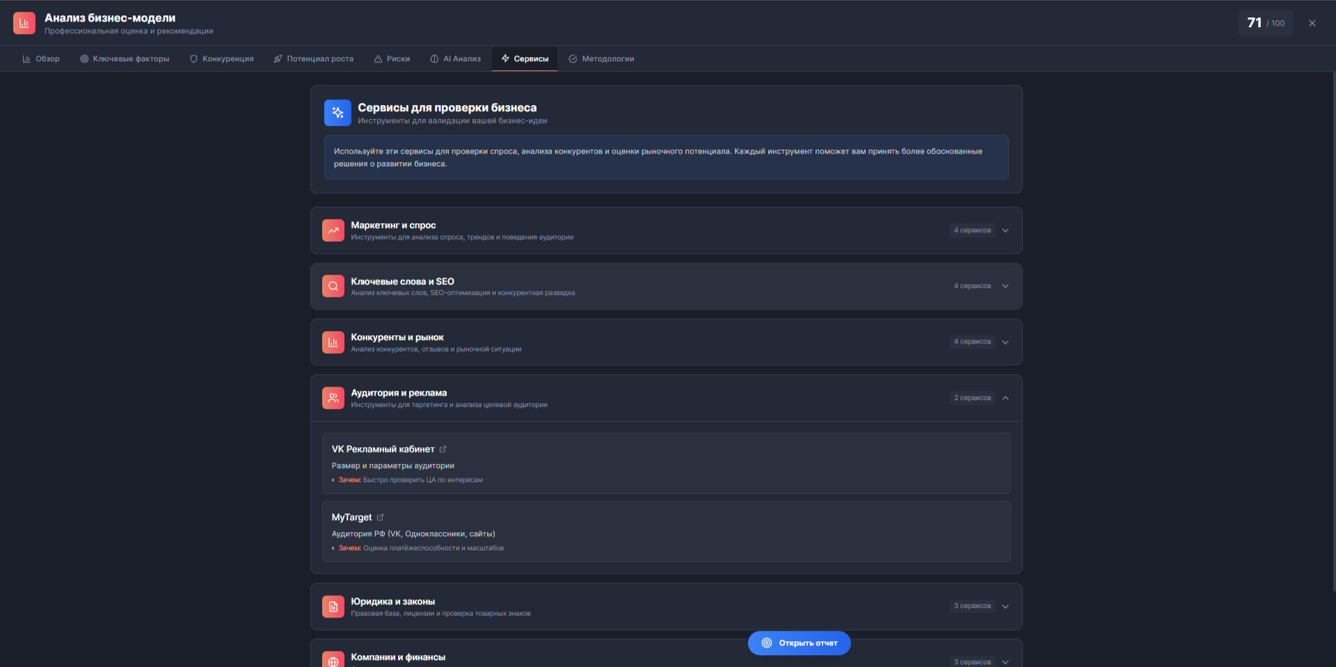 платформа создана по мотивам книги Построение Бизнес-Моделей Александр Остервальдер, аналогов нету.
