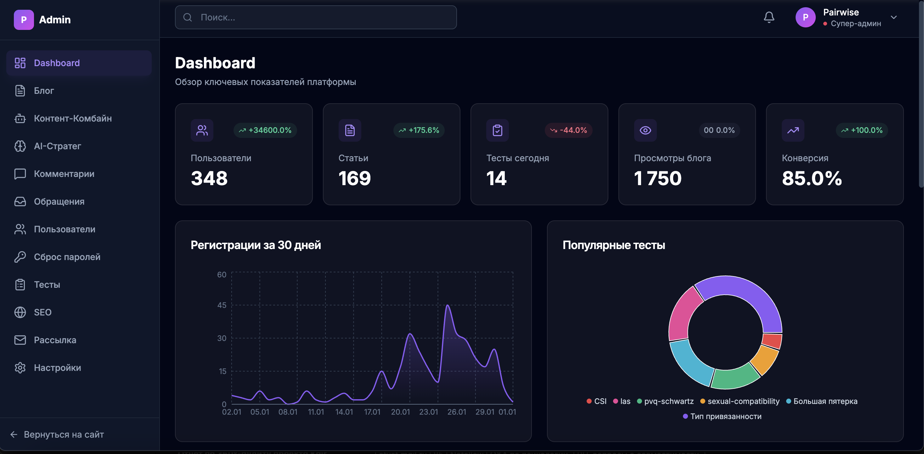 Научная платформа психологических тестов на совместимость в романтических отношениях. Ниша: психология отношений, онлайн-тестирование, self-help. Целевая аудитория: пары, желающие улучшить отношения, одиночки, психологи-консультанты.