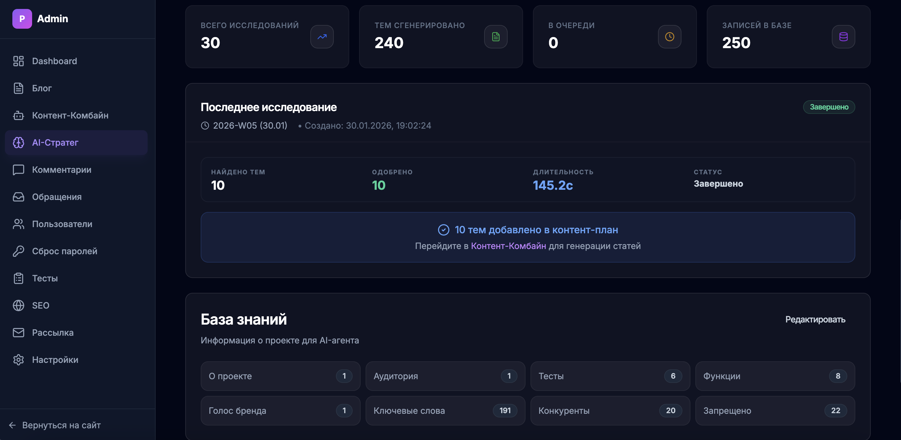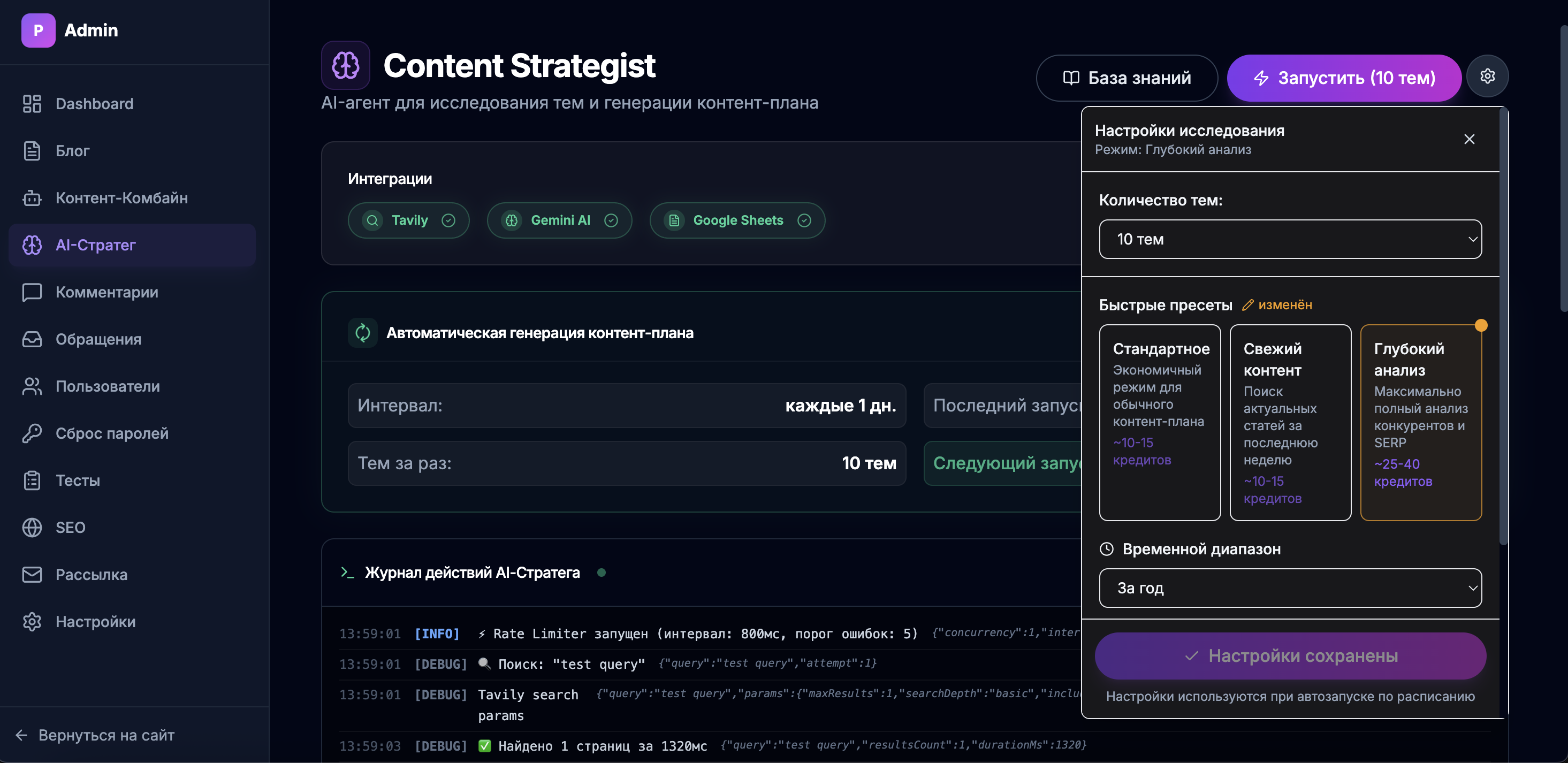 - Content Pipeline — полностью автоматическая AI-генерация статей