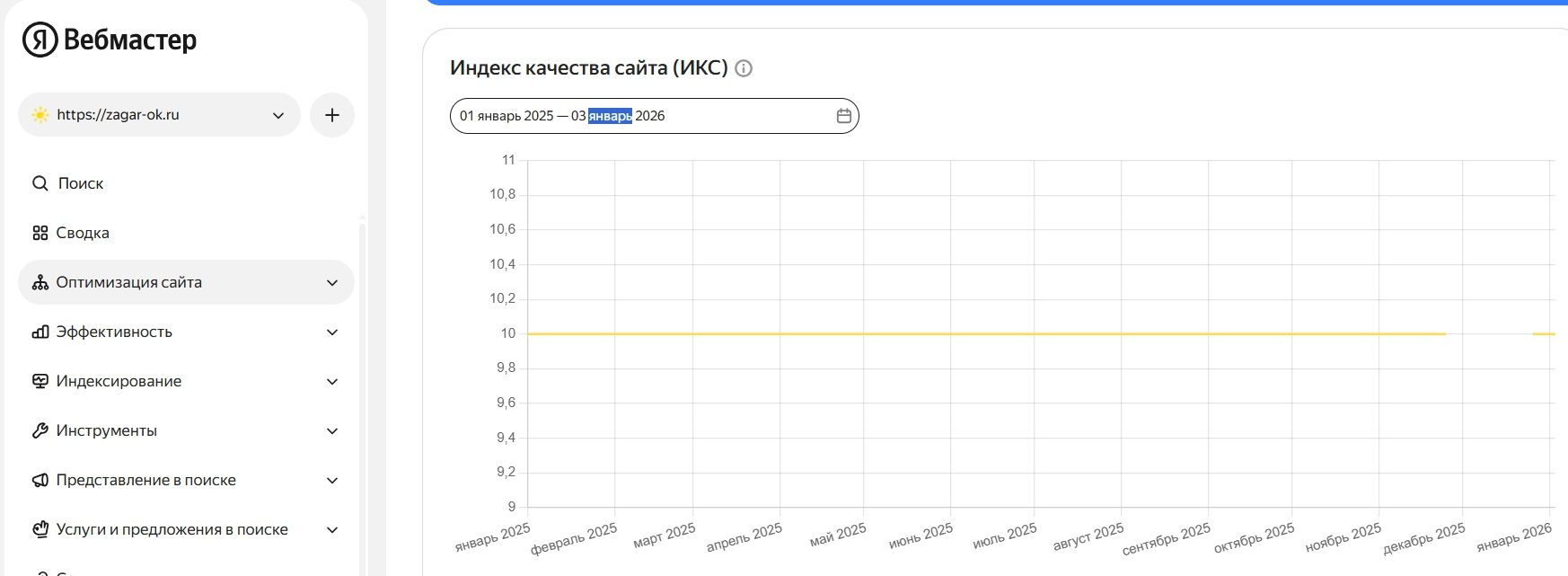 У сайта с ИСК 10 с января 2026 (ИКС упал в декабре 2025 до 0, скрин прилагаю)