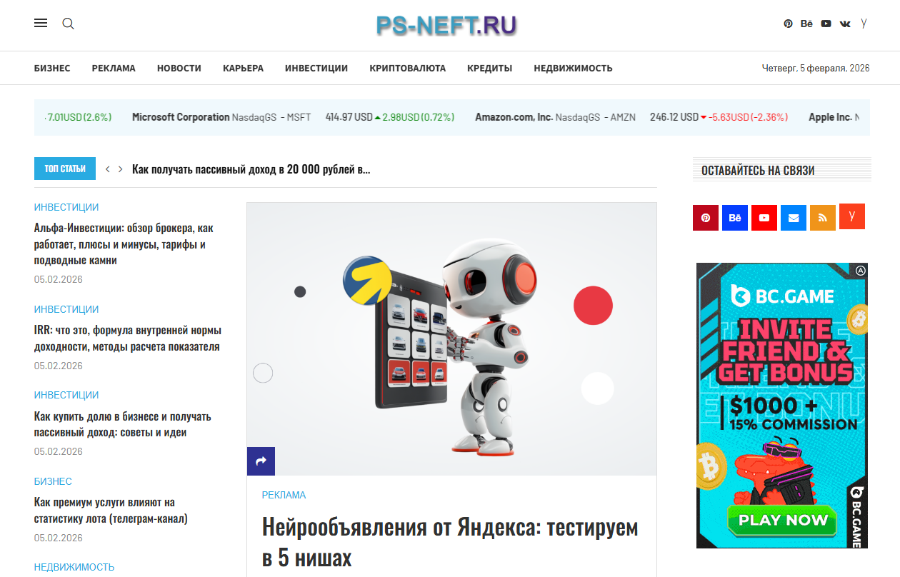 Автонаполняемый сайт Бизнес и финансы ИКС 110