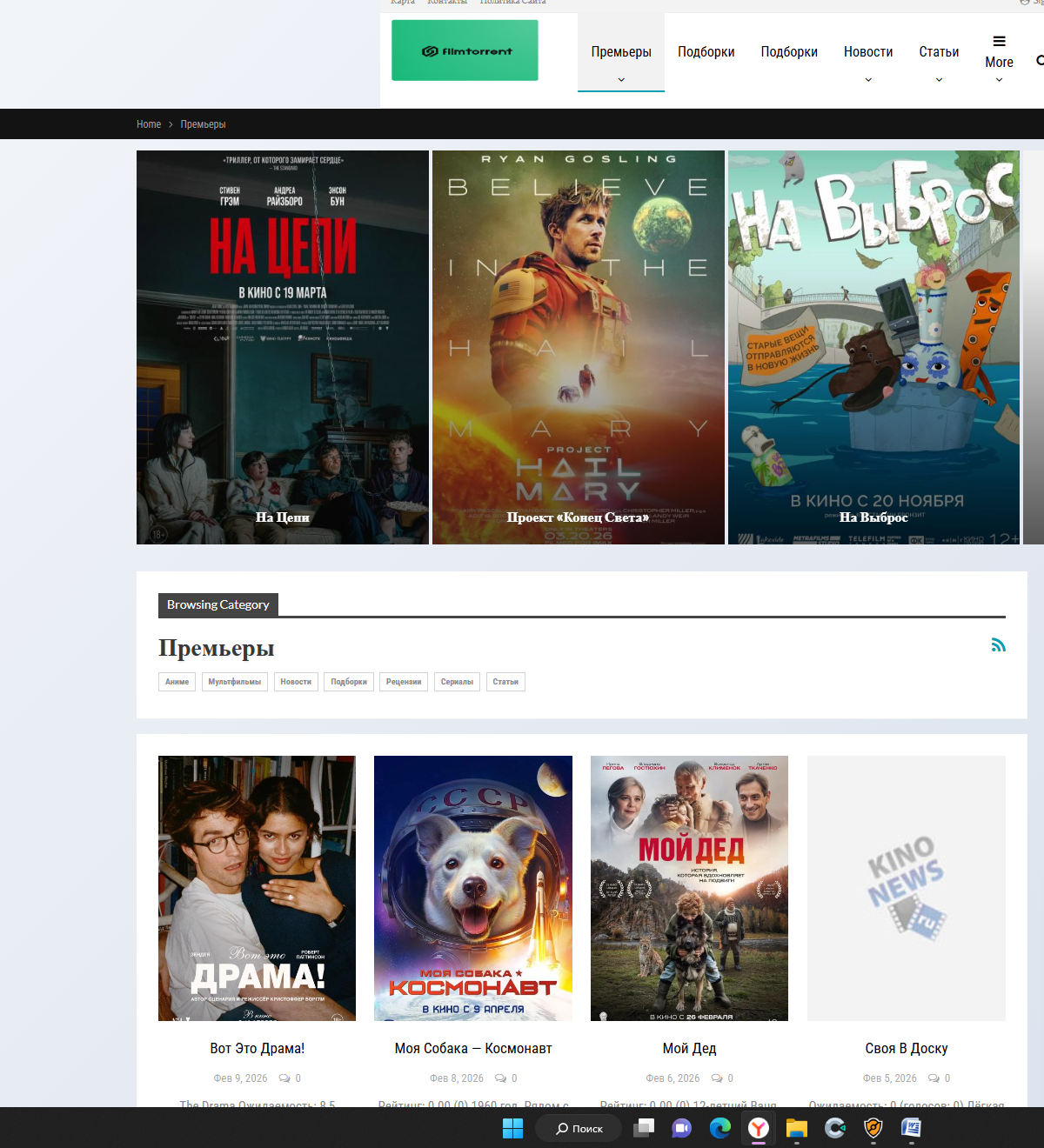 — Настроенная структура: 5 разделов (Новости, Статьи, Подборки, Рецензии, Премьеры)
