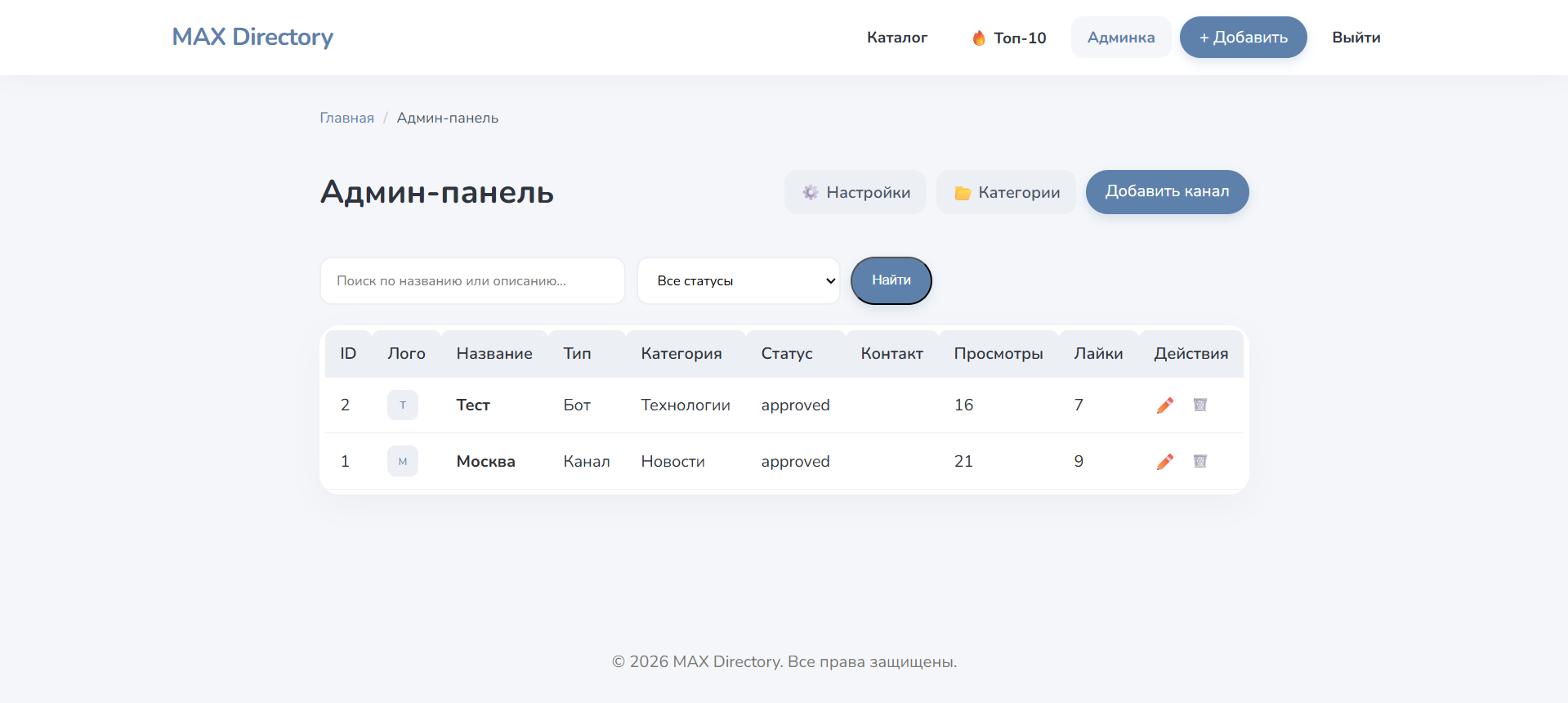 Каталог MAX-ресурсов, Каналов, ботов, Чатов.