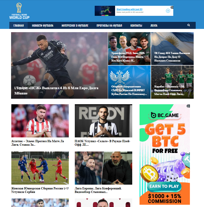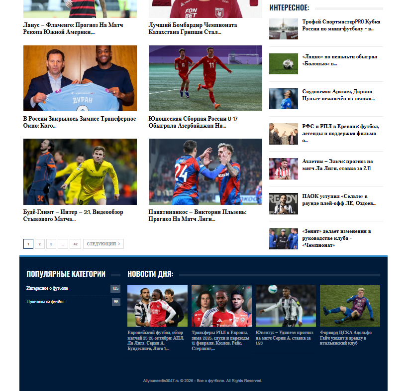 Автонаполняемый сайт о футболе (Новости, прогнозы ставок, обзоры матчей).