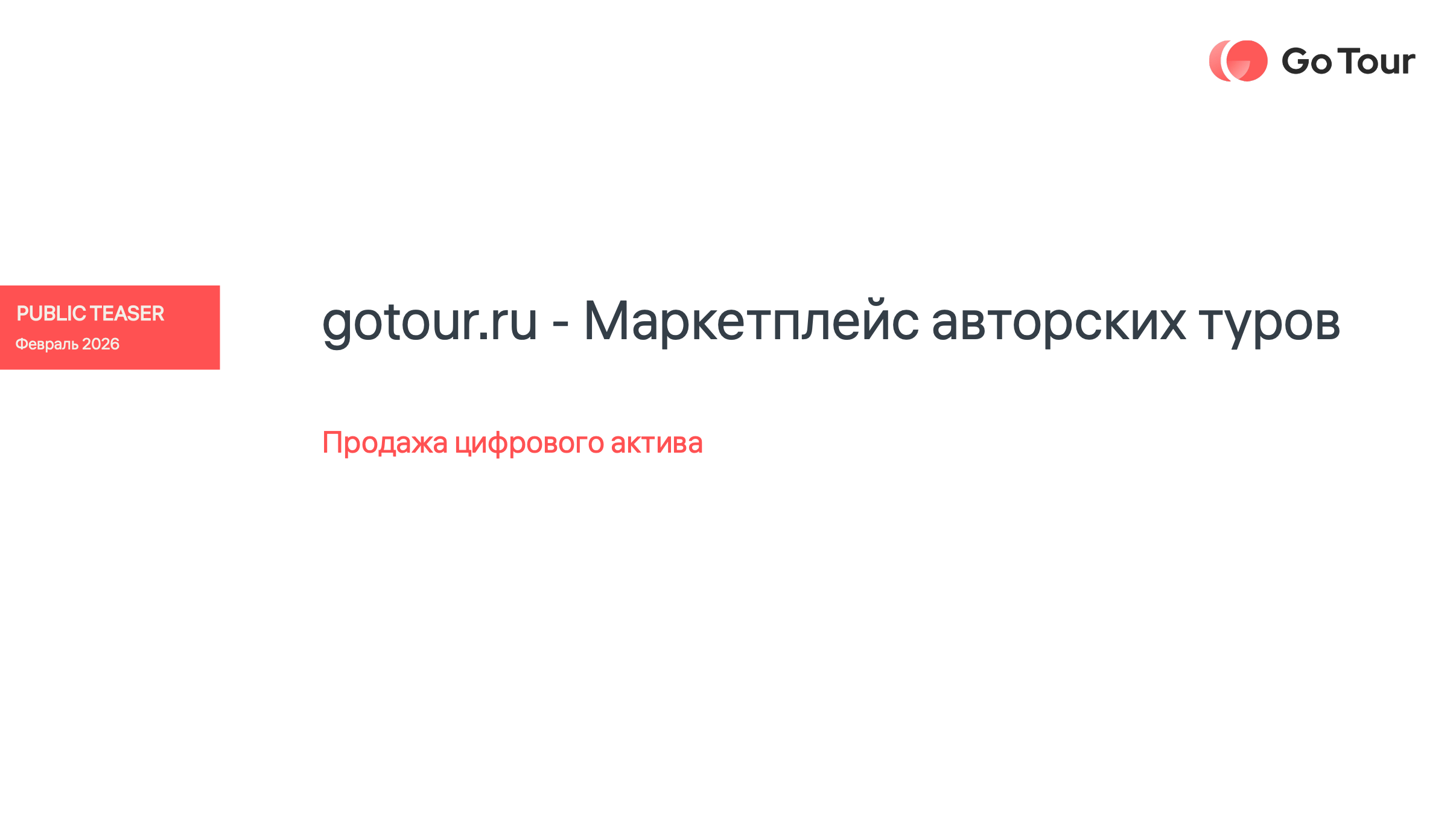 Продаю GoTour (gotour.ru) — готовый digital‑актив в travel‑нише: маркетплейс авторских туров/путешествий с работающей платформой, контентом, базами и бренд‑активами.