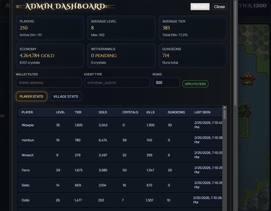 Пиксельная мморпг игра на блокчейне Solana. Подключена авторизации и платежи через блокчейн. Игра стабильно находится в топе 15-20 рейтинга на сайте playtoearn.com.