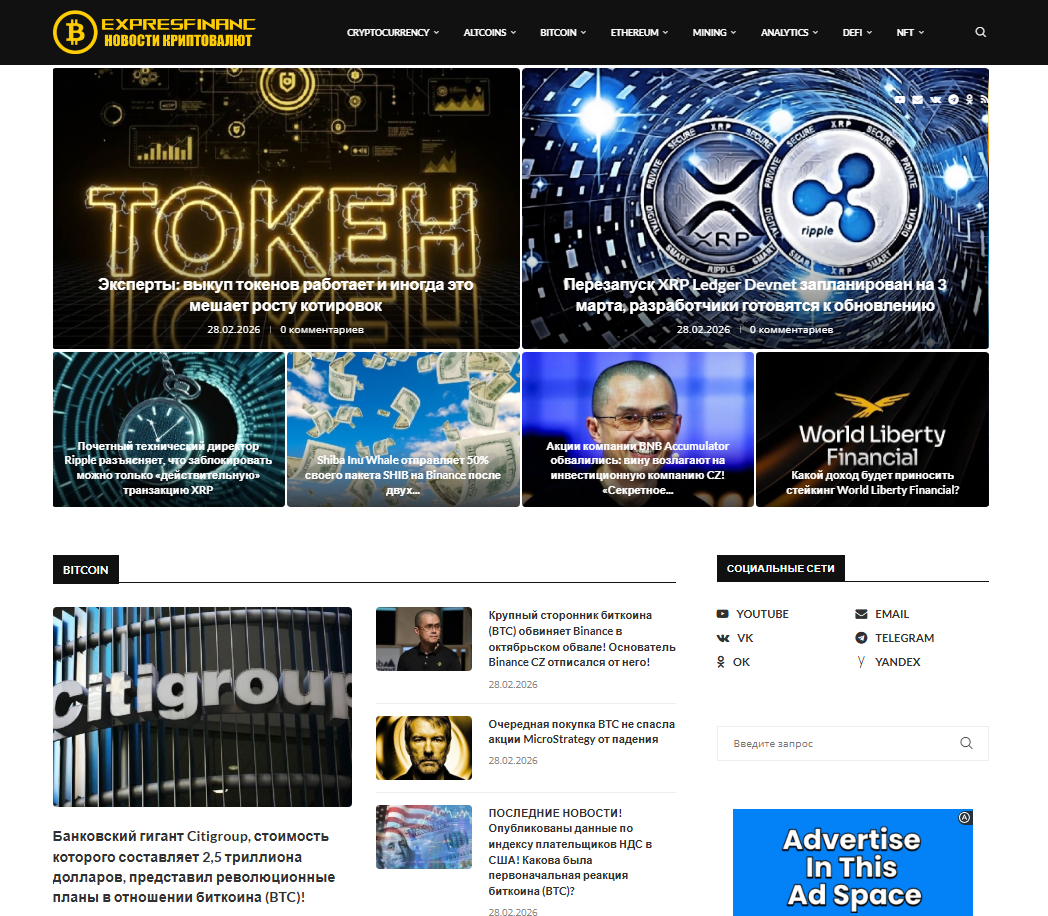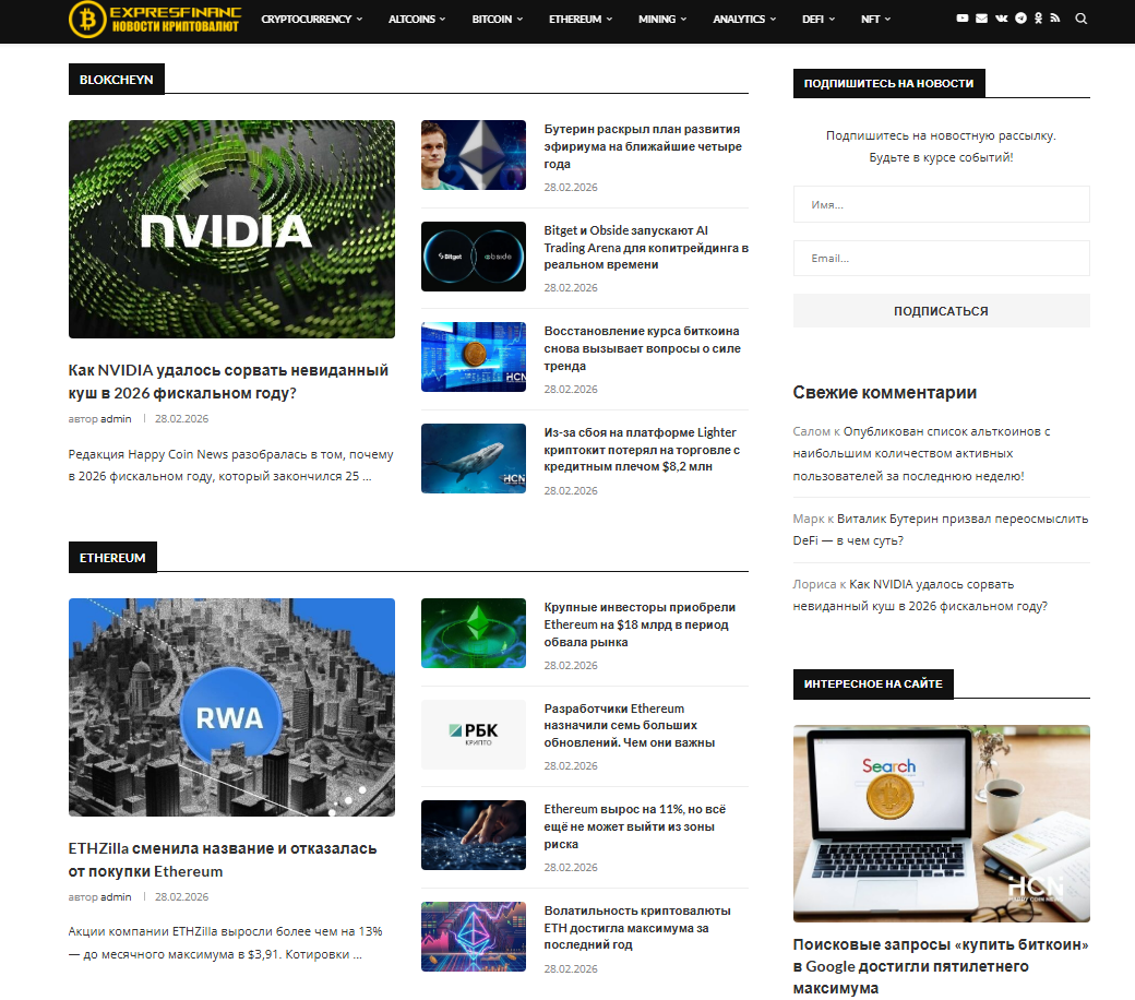Автонаполняемый сайт о криптовалютах ИКС 110 на премиум теме wordpress