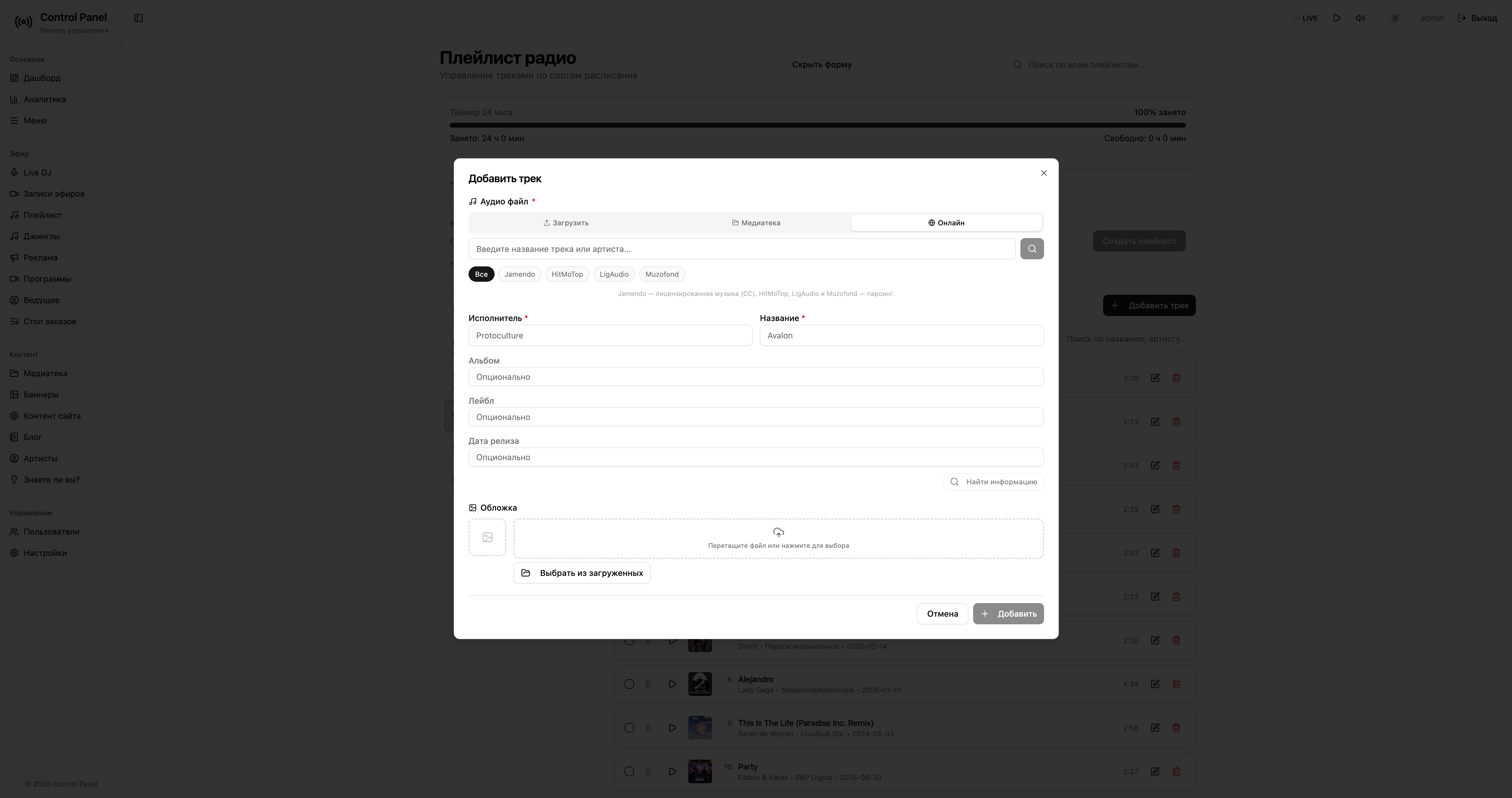 Быстрое добавление в эфирные плейлисты через админку.