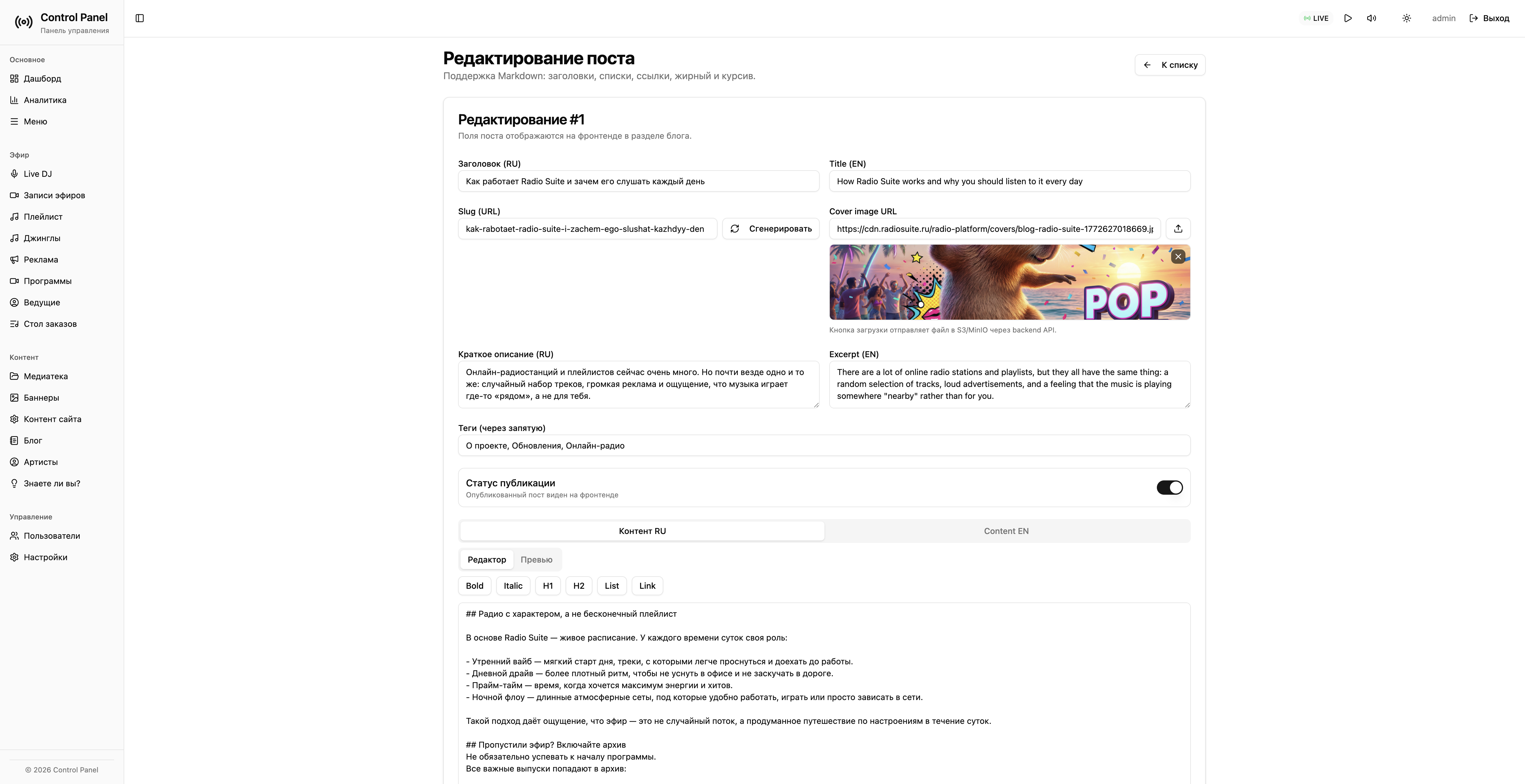 артисты, треки, обложки, баннеры, блог;