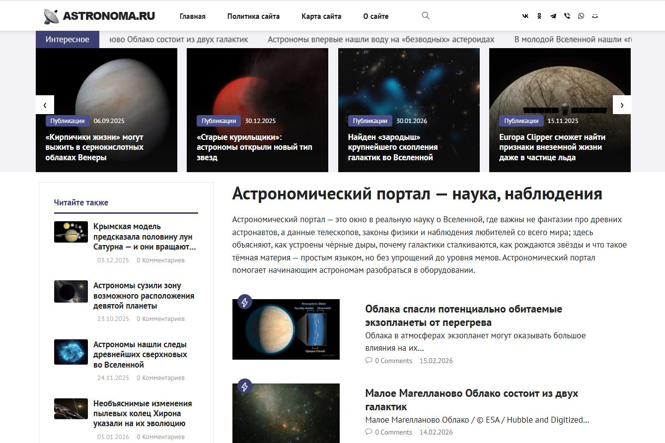 #астрономия #астрономический_портал #космос #астрофизика #планеты #звёзды #галактики #чёрные_дыры #тёмная_материя #тёмная_энергия #Солнечная_система #Марс #Венера #Юпитер #Сатурн #Луна #экзопланеты #космические_миссии #NASA #ESA #Роскосмос #SpaceX #теlescope #Хаббл #Джеймс_Уэбб #радиотелескопы #обсерватории #астрономические_открытия #новости_астрономии #метеоры #кометы #астероиды #солнечные_вспышки #магнитные_бури #астрономия_для_начинающих #звездочёты #любительская_астрономия #ночная_наблюдательная_площадка #карта_звёздного_неба #астрокалендарь #события_в_космосе #2026 #автонаполнение_астрономия #парсинг_космических_новостей #автопостинг #WordPress_астрономия