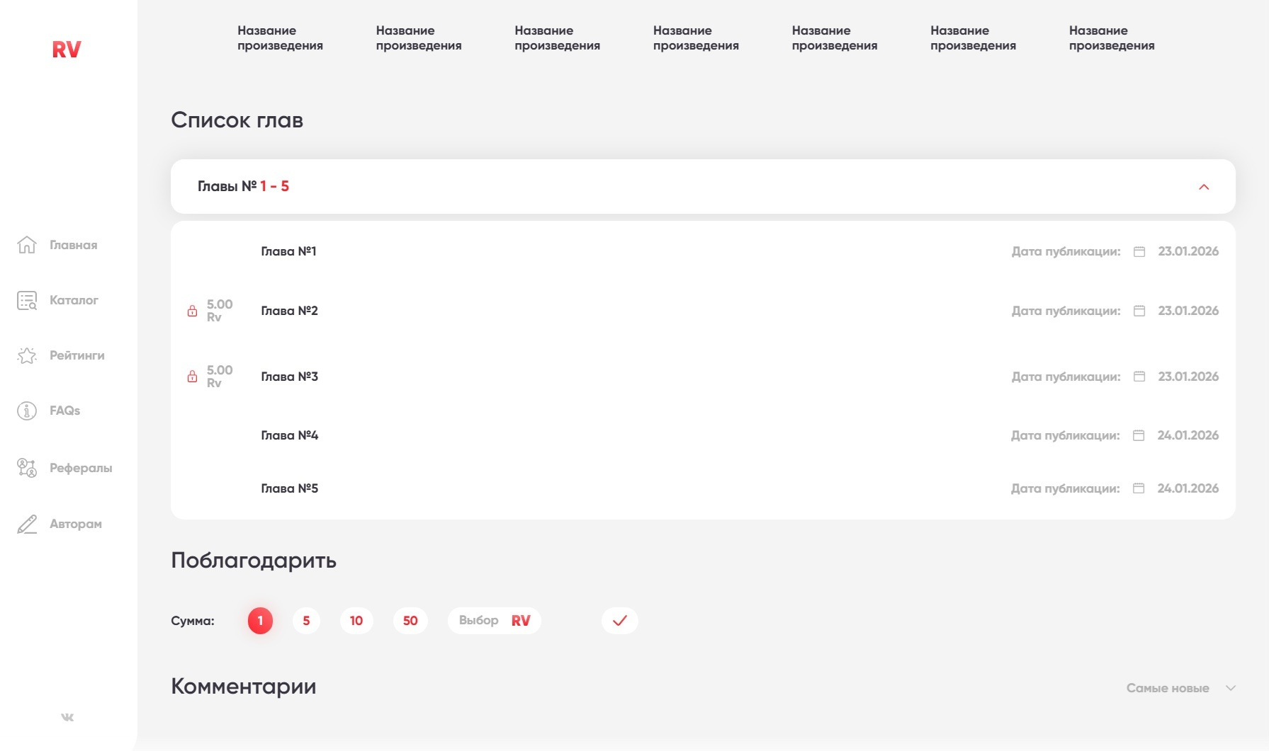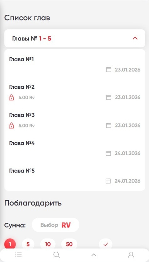— Статистика (общая статистика продаж, статистика по произведениям, статистика по главам);