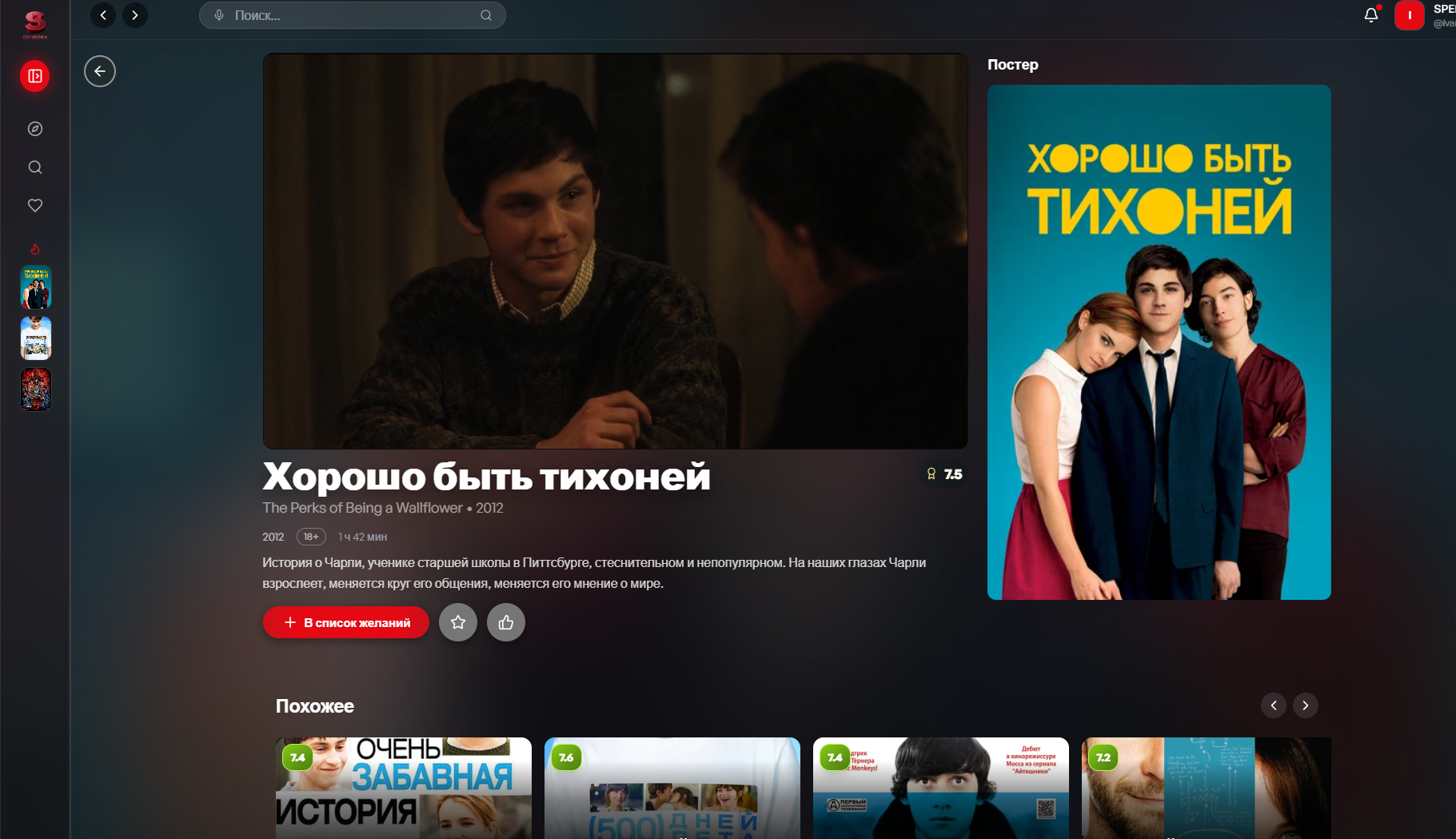 Проект уже реализует ключевые пользовательские сценарии стриминг-сервиса: поиск, просмотр, сохранение в списки, персональные рекомендации