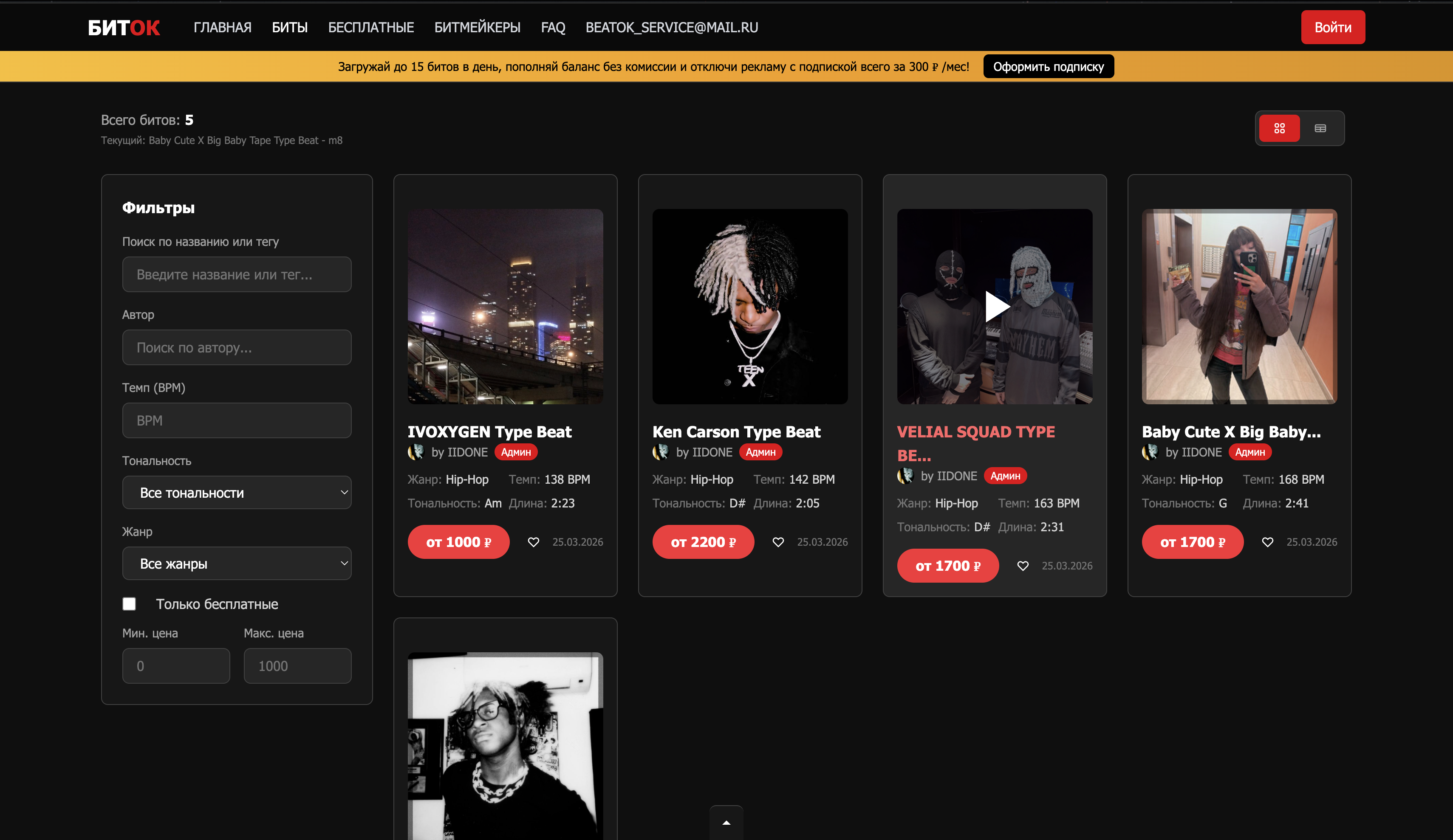 Сервис размещен на хостинге от Selectel и может масштабироваться по стоимости аренды. Имеется необходимость разбираться в сфере, так как нужно модерировать биты и обрабатывать заявки в поддержку.